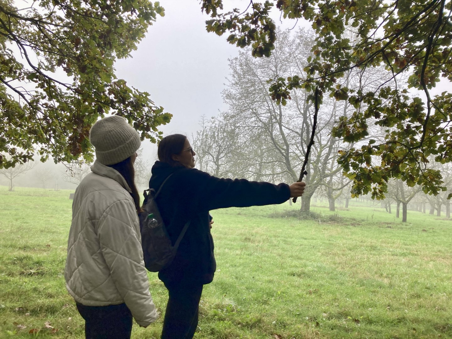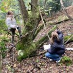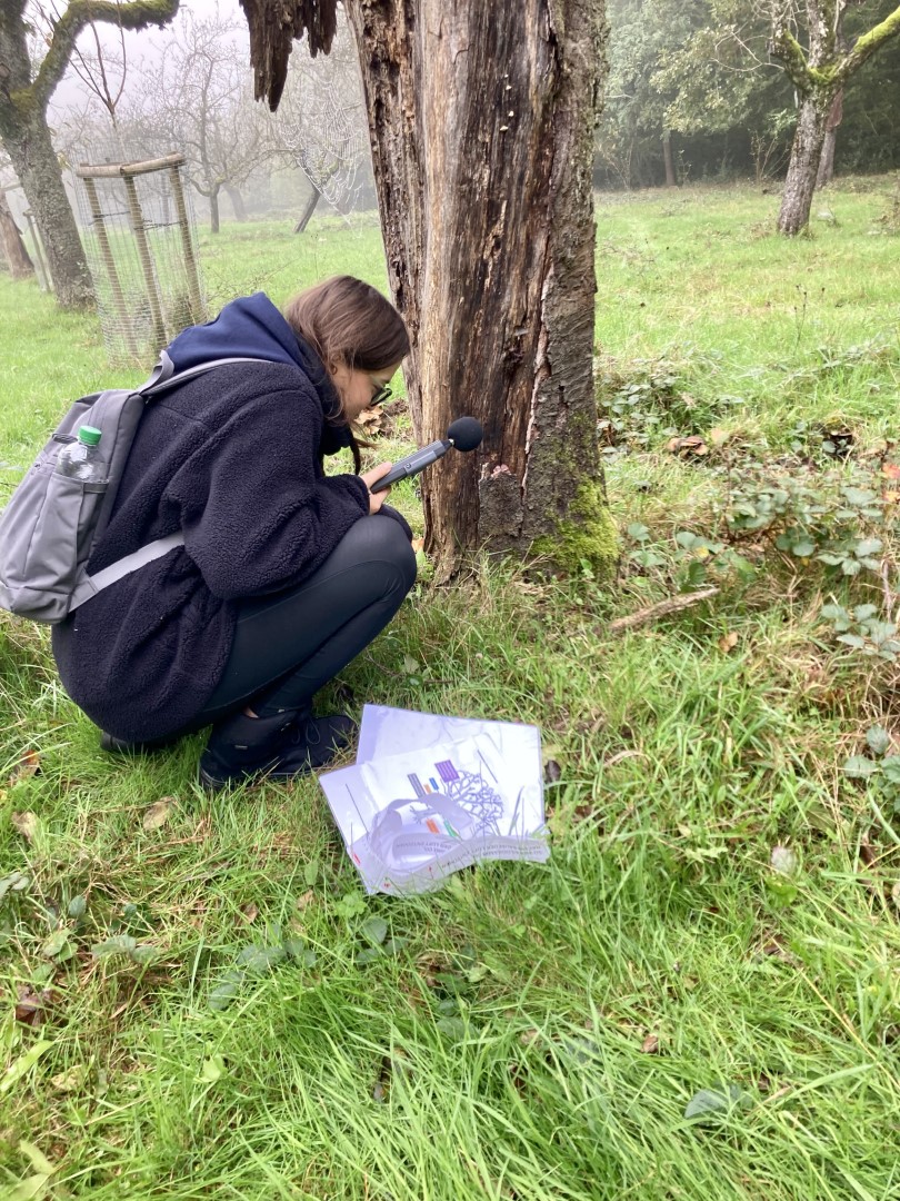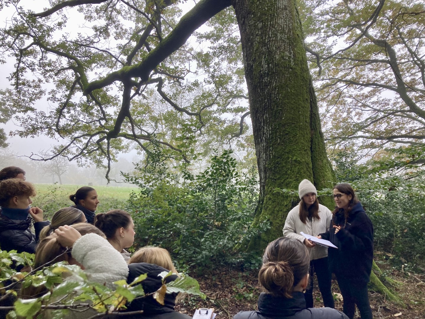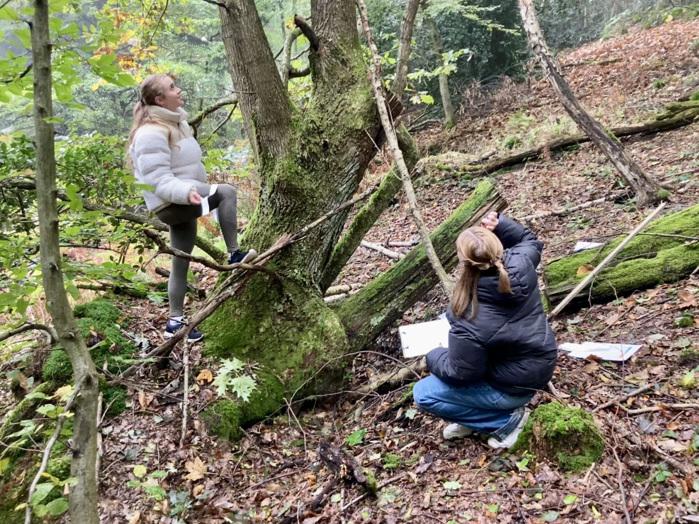 Sehr viele aus dem Kurs fanden es sehr entspannend mit sich selbst und der ruhigen Umgebung zu sein. Nachdem wir unsere Ergebnisse besprochen haben, ging es auch schon zu unseren Forschungsprojekten: Zwei Gruppen sollten sich mit verschiedenen Holzarten beschäftigen, während sich die andere Gruppe Habitatbäume – also Bäume, die als Lebensraum dienen, anschaute.