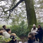 Unsere Biologielehrerin Madeleine Friedrich-Meinzer hat uns allgemein etwas zu Bäumen erzählt, danach hatten wir auch schon unsere erste Aufgabe: Wir sollten uns alleine an einen ruhigen Ort setzen und einfach schauen und hören was man alles für Lebewesen entdeckt.