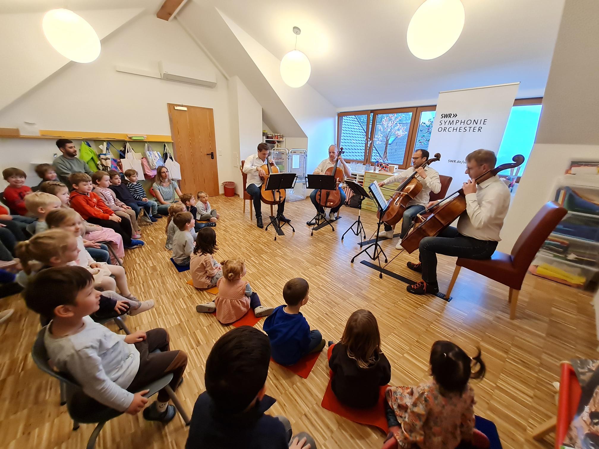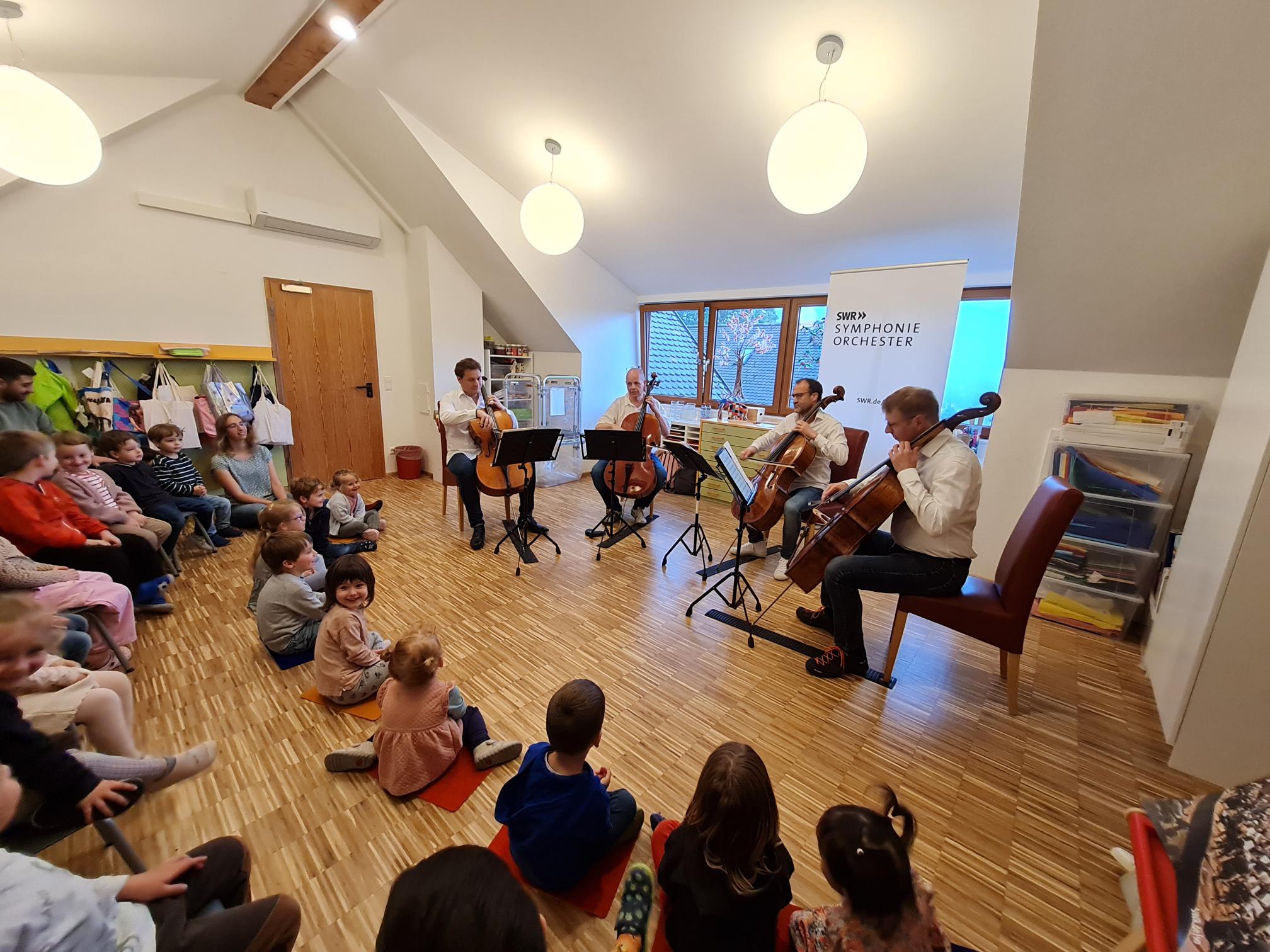 Alle Allgemein Kindergarten Cellisten zu Gast bei den Kleinsten 2 Likes 673 Views 4 Cellisten des SWR Symphonie-Orchesters waren heute zu Gast bei unseren Kindergartenkindern. Und wer dachte, dass klassische Musik nichts für die Kleinsten ist, der darf sich gerne eines besseren belehren lassen: Cellisten Klassische Musikinstrumente Symphonie-Orchester