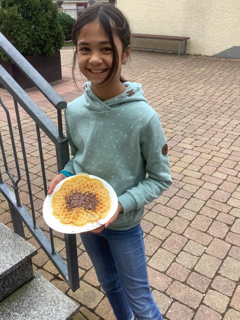 Alle Allgemein Da gab`s was auf die Waffel! 1 Like 522 Views Und zwar von unserer Klasse 6a des Gymnasiums. Die haben mit viel Mühe in den letzten beiden Wochen Plakate gemalt um ihren Waffelverkauf vor den Faschingsferien anzukündigen. Und wie immer, wenn es Waffeln, zudem noch mit leckeren “Toppings” gibt, ist der Andrang groß. Dass das geschmeckt hat, sieht man auf den Bildern: Zubereitung… und Verkauf. Wartezeit, die sich aber… lohnt! Klasse 6a Gymnasium Leckere Toppings Waffelverkauf