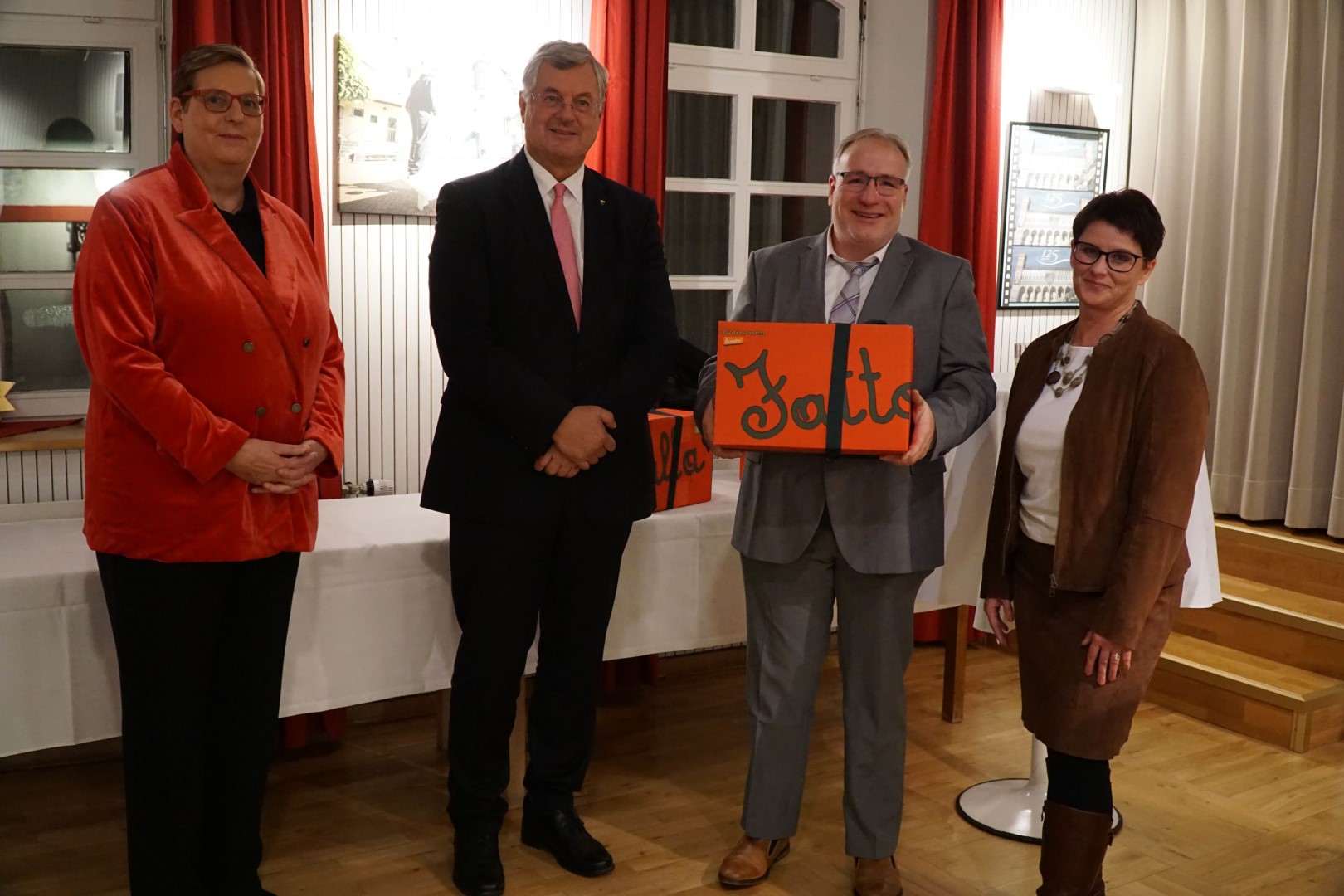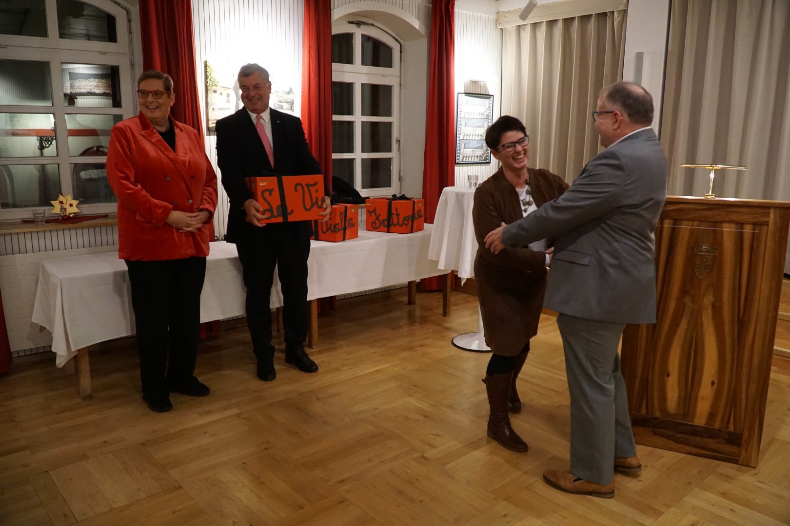 In unserer Mensa, dem Speisesaal und der Aula wurde geehrt, angestoßen und gefeiert. Dazu waren auch wieder die ehemaligen Kolleginnen und Kollegen eingeladen und es war wieder schön zu sehen, dass viele kamen.