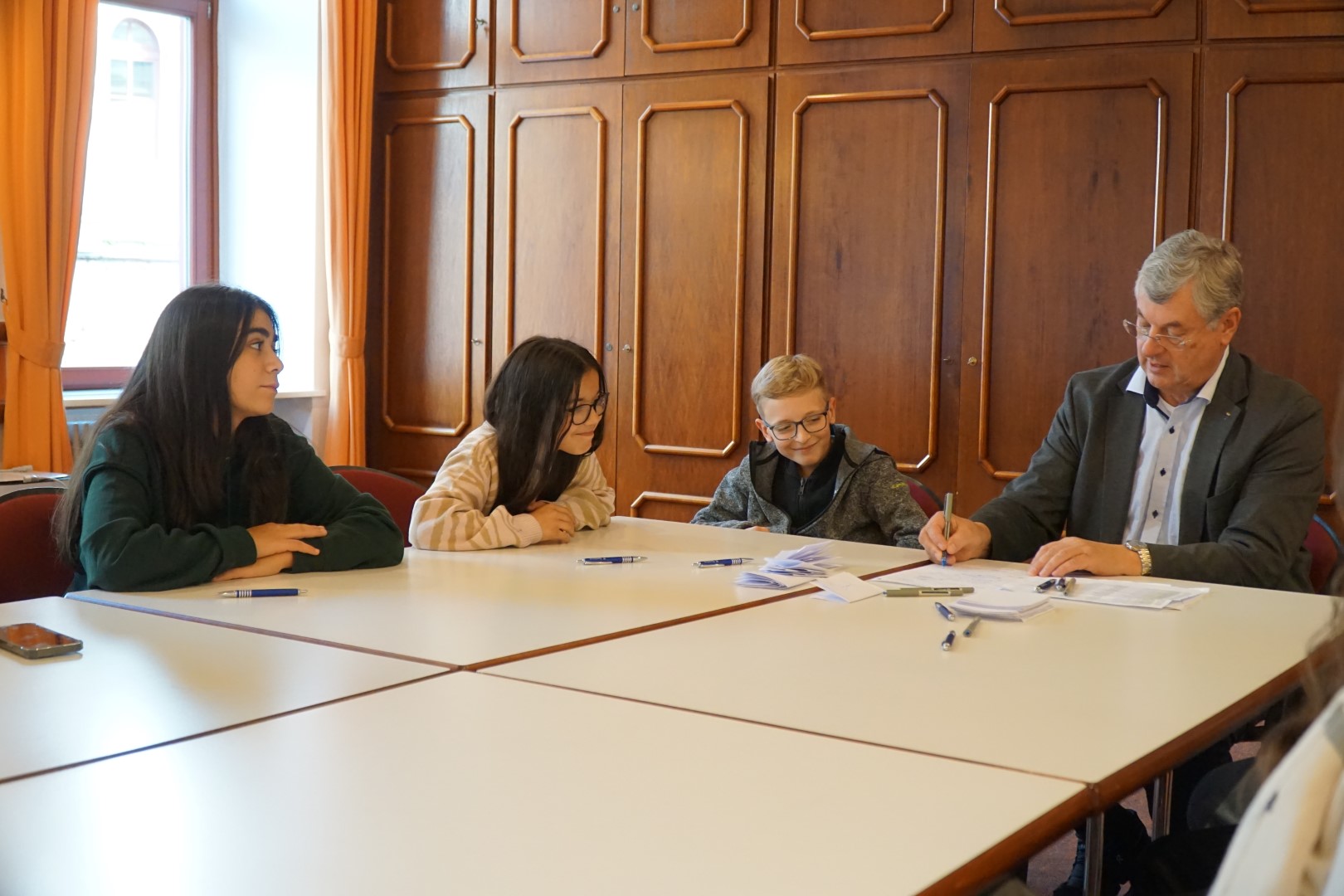 Unter der Leitung von Schulleiter Michael Büchler fanden die Wahlen zum Präsidenten und den Vize-Präsidenten des Schulgesprächs statt. Das Schulgespräch setzt sich zusammen aus allen gewählten Schülervertreterinnen und -vertretern aller Klassen auf dem Schlossberg. Hier wird schließlich auch die Präsidentin oder der Präsident gewählt. Dazu stellen sich die gewählten Vertreter vor und erläutern ihre Ideen, Vorschläge und Ziele, die sie im laufenden Schuljahr gerne über das Schulgespräch umsetzen möchten. Anschließend wird gewählt.