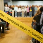 Zur Begrüßung in der Aula wussten die Schulleiter Michael Büchler für das Gymnasium und Matthias Fischer für die Realschule auch, wie aufregend so ein erster Tag an der neuen Schule sein kann. “Schulleitung, Klassenlehrerinnen und Klassenlehrer, alle Kolleginnen und Kollegen und auch die herbeigerufenen Paten werden aber dafür sorgen, dass alles gut gehen wird und eure Aufregung sich legen wird”, so die beiden Schulleiter.