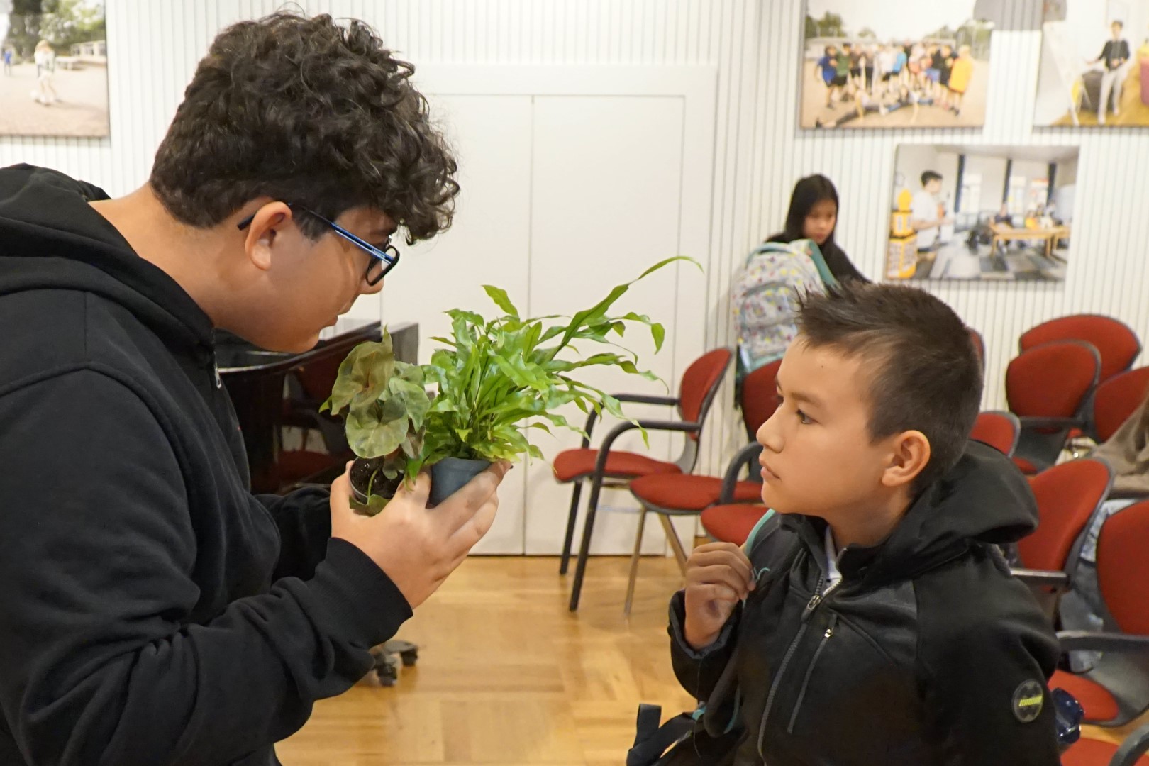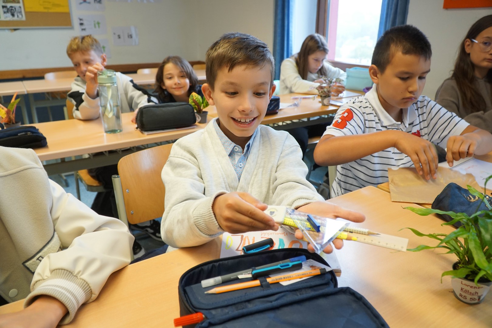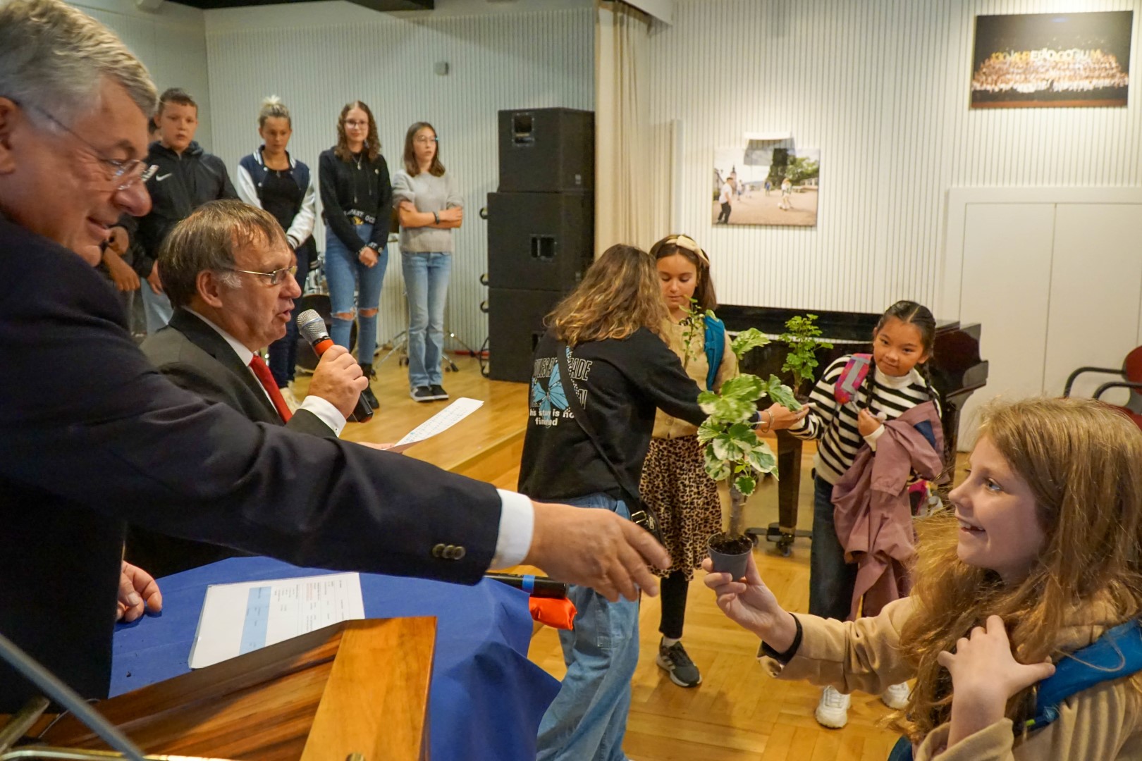 Von den Patinnen und Paten gab es dann zur Begrüßung kleine Pflänzchen und Schulleiter Matthias Fischer erklärte, dass es nun darum ginge, diese kleinen Pflanzen zu hegen und zu pflegen, damit sie wachsen und groß werden können. Ebenso werden alle Lehrerinnen und Lehrer auf dem Schlossberg das gleiche tun: Unsere neuen Fünftklässler begleiten, zur Seite stehen und helfen, wo Hilfe gebraucht wird.