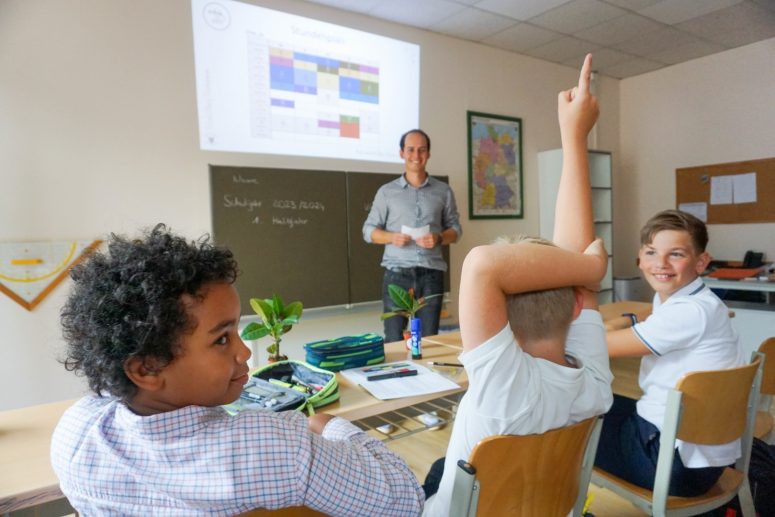 Das Erlernen der Buchstaben ist die wichtigste Aufgabe in Klasse 1. Mit dem ABC-Lied gaben die dritten Klassen unterstützt von der Klasse 4a einen schwungvollen Start für das Erlernen der Buchstaben. Im Anschluss bot die Freizeitgruppe ‘Akrobatik’ ihr Können auf beeindruckende Weise dar. “Anders als du … egal … das macht das Leben bunt” gaben die Viertklässler*innen den Erstklässler*innen mit auf den Weg. Für die Erstklässler*innen war nun der Moment, dass sie mit ihrer Lehrerin in ihr Klassenzimmer ziehen durften, um ihre erste Unterrichtsstunde zu haben.