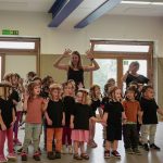 In der Turnhalle fand ein buntes und abwechslungsreiches Programm statt. Nach einer instrumentalen Begrüßung durch die Viertklässler, präsentierte der Kindergarten mit Tanz und Theater sein Können. Einige Freizeitgruppen gaben mit ‘Mary Poppins’, einer Akrobatik-Darbietung, einer Breakdance-Show oder einem Tanz Einblicke in ihr an den Nachmittagen einstudiertes Repertoire.