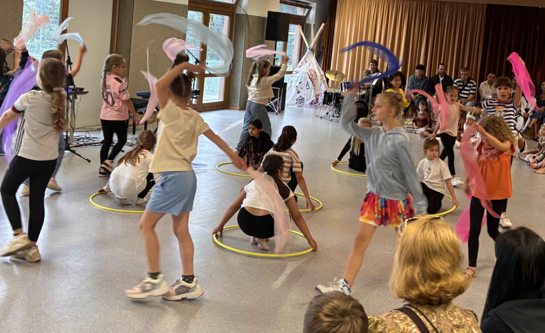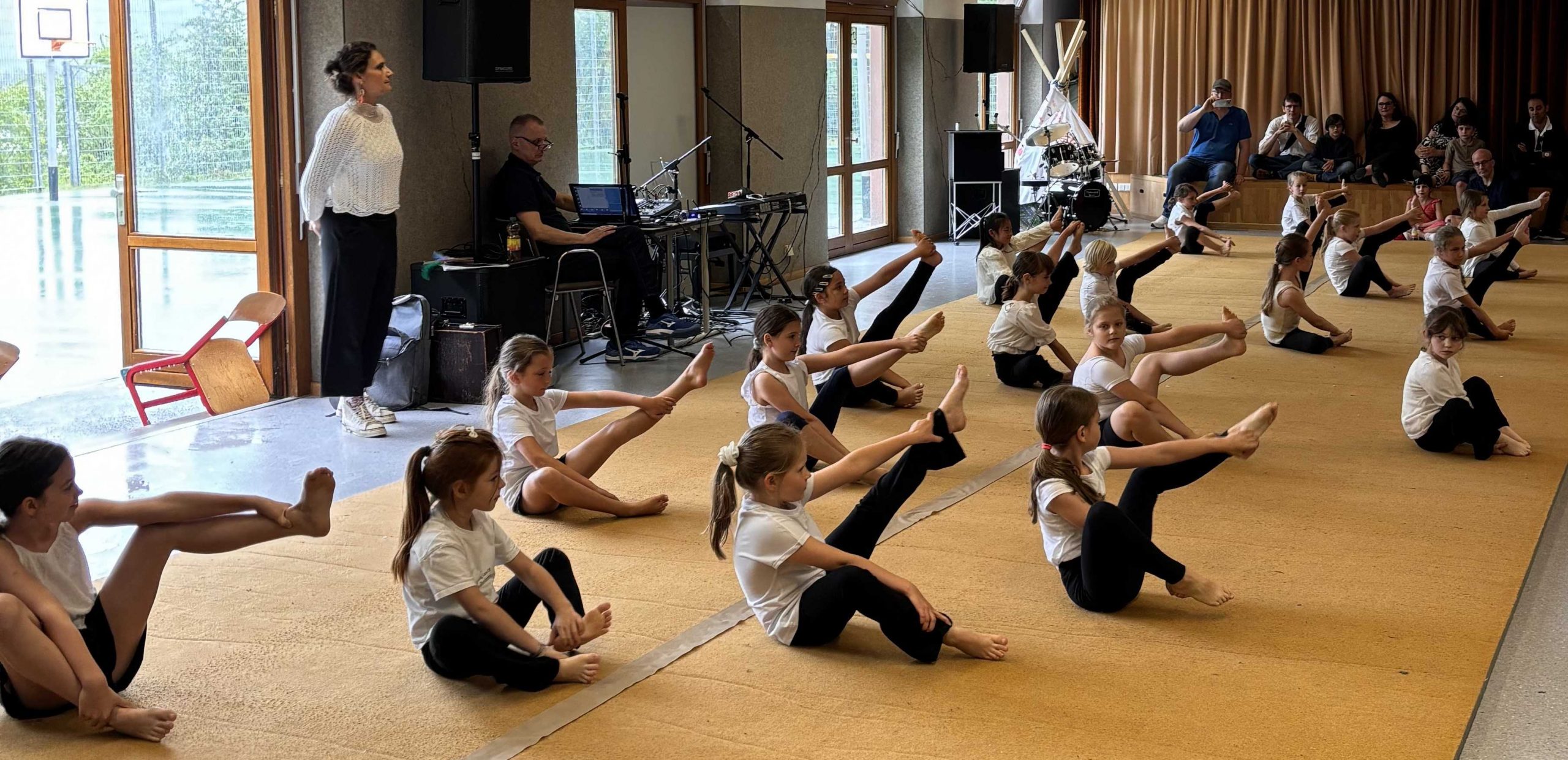 In der Turnhalle fand ein buntes und abwechslungsreiches Programm statt. Nach einer instrumentalen Begrüßung durch die Viertklässler, präsentierte der Kindergarten mit Tanz und Theater sein Können. Einige Freizeitgruppen gaben mit ‘Mary Poppins’, einer Akrobatik-Darbietung, einer Breakdance-Show oder einem Tanz Einblicke in ihr an den Nachmittagen einstudiertes Repertoire.