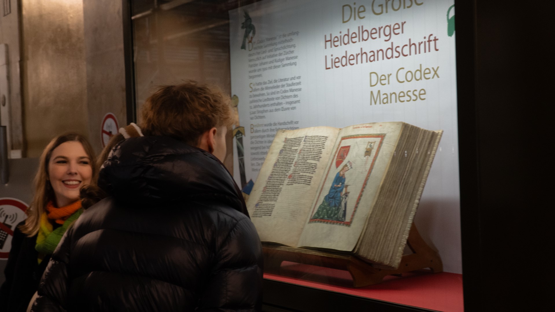Besonderes Highlight war hier der Codex Manesse, eine Prunkhandschrift auf dem Spätmittelalter, in der viele mittelhochdeutsche Lieder – z. B. von Walter von der Vogelweide – enthalten sind. Diese Handschrift hat heute einen Wert von mehreren Millionen Euro.