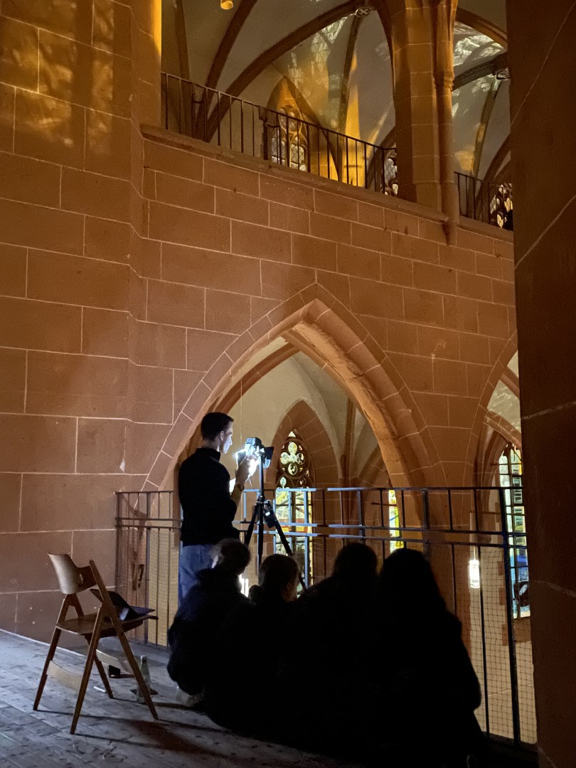 Im Mittelpunkt der Exkursion stand aber der Kirchenraum selbst, denn zu dem Jahresthema “Freiraum Kirche” gestalteten die Schülerinnen und Schüler gemeinsam mit dem Gymnasium Bammental Lightpainting Bilder, die ab Pfingsten in der Heiliggeistkirche ausgestellt werden.
