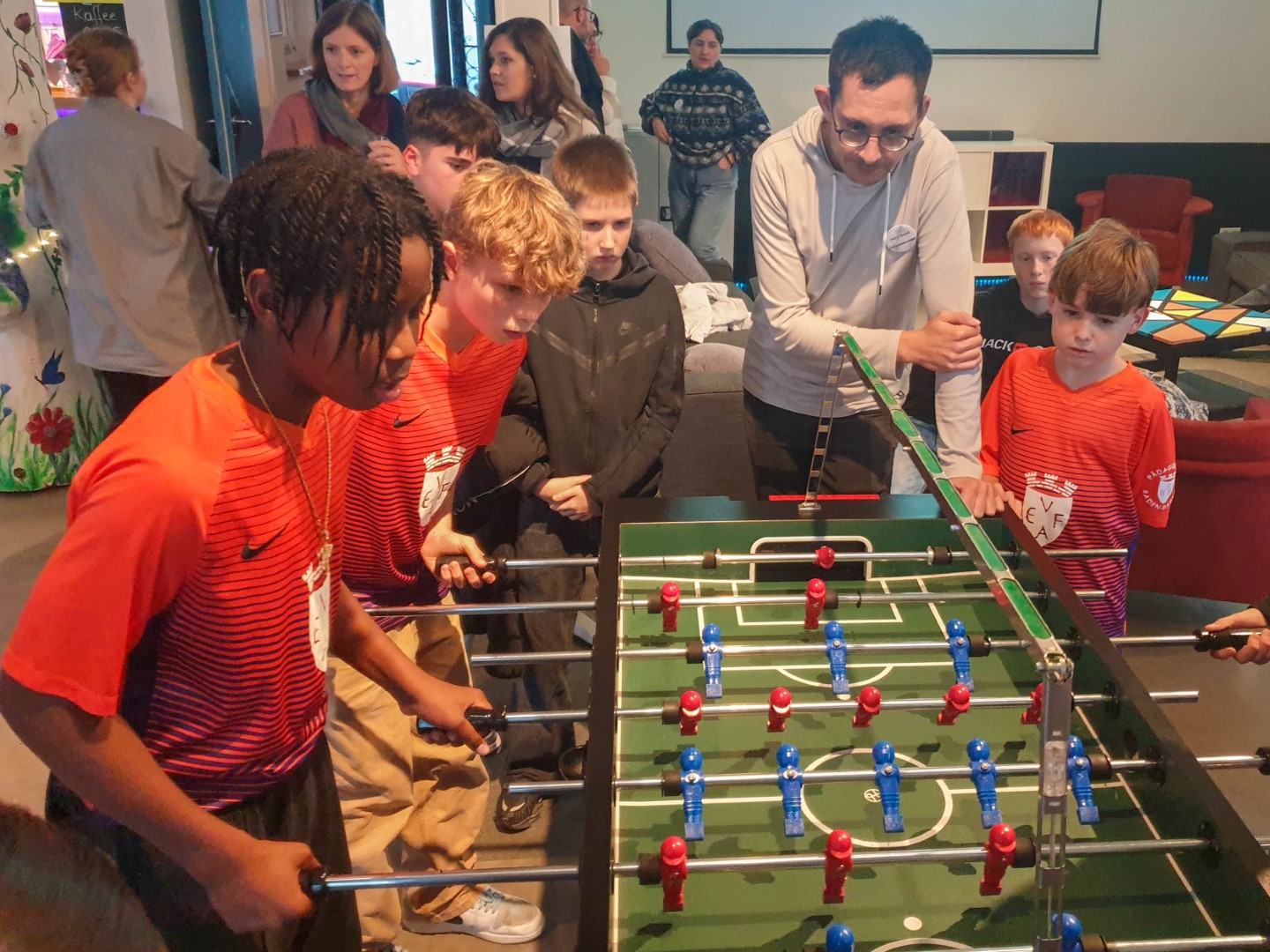 Am Montag vor den Herbstferien waren die Kicker-Schulmeisterschaften der 7. Klassen in der „Jube“ in Baden-Baden. Mit unseren Spielen David Volz (Defensive) & Novouy McPherson (Offensive) sowie Ersatzmann Benno Gaddum hatten wir eine sehr gut aufgestellte Truppe, was sich auch am Ergebnis ablesen lies.