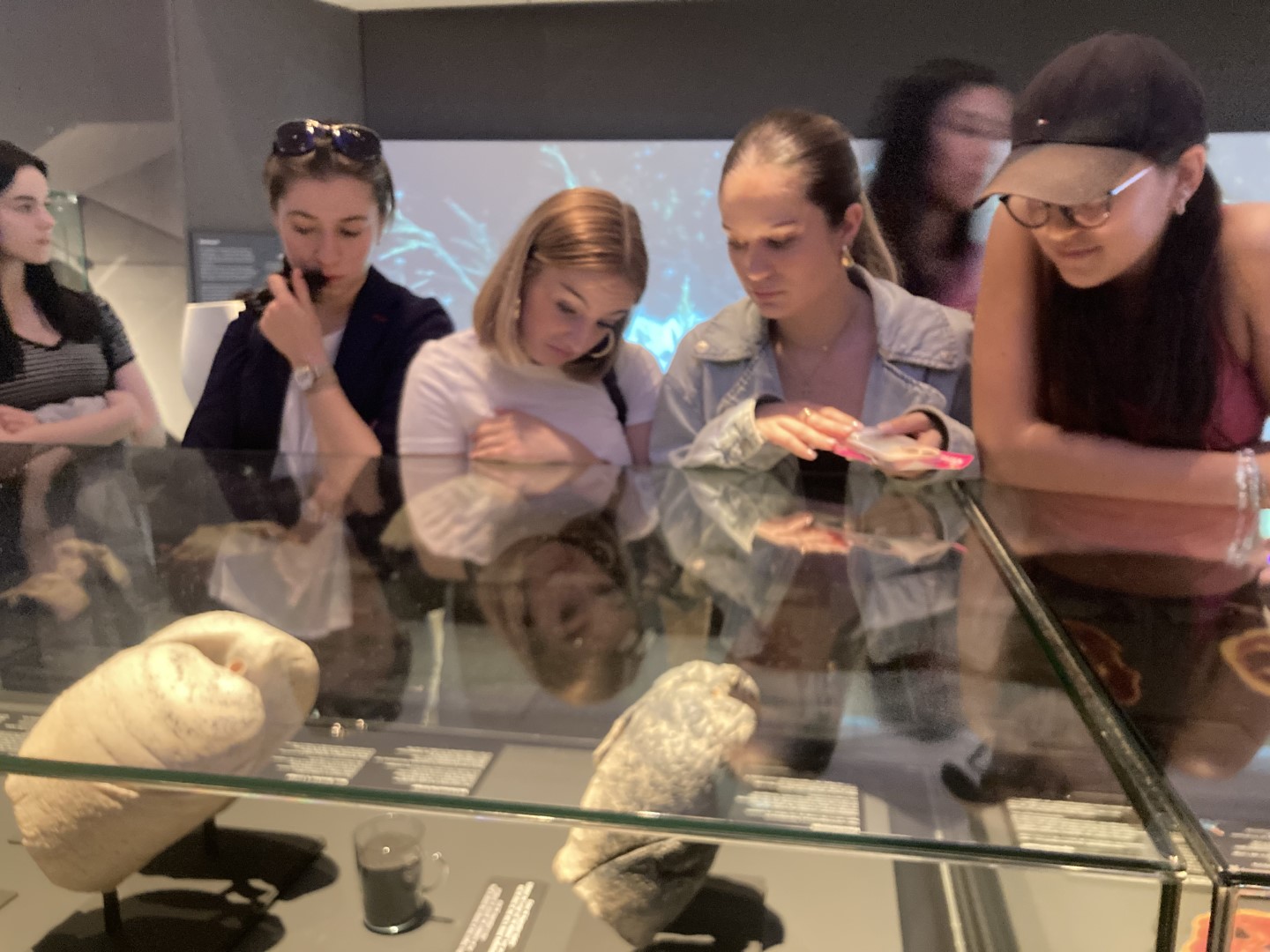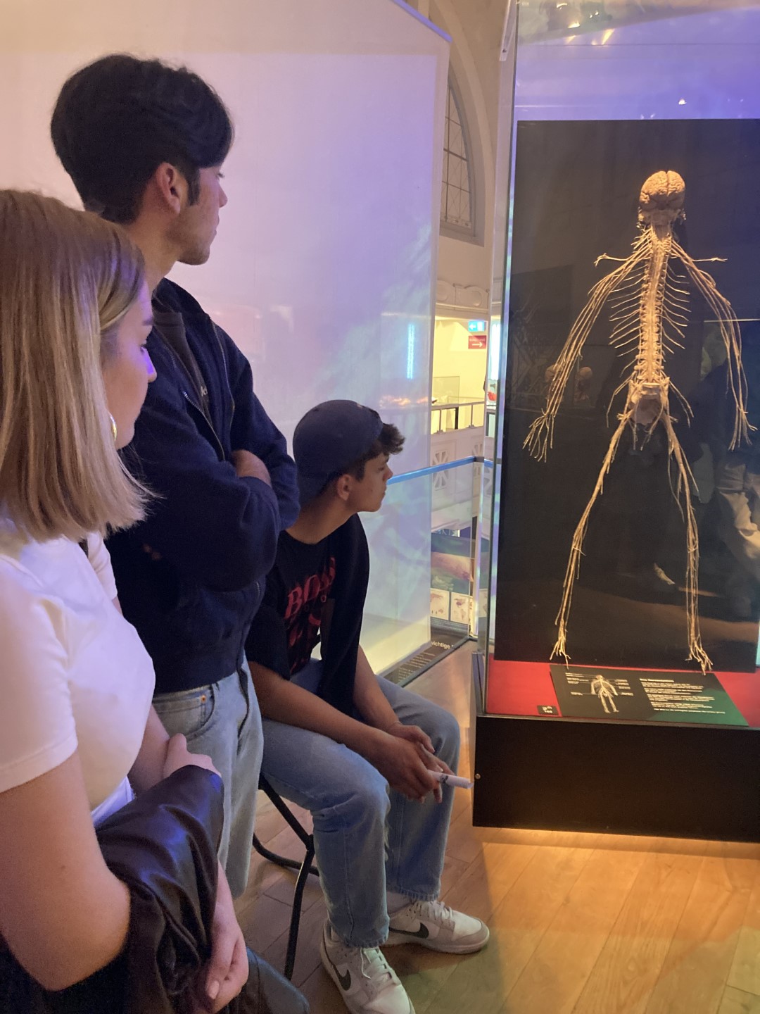 Eine Medizinstudentin konnte unseren Schülerinnen und Schülern des Basis- und Leistungsfachs Biologie der Jahrgangsstufe 1 des Gymnasiums mit den Fachlehrerinnen Janna Reister und Madeleine Friedrich-Meinzer durch die Körperweltenausstellung in Heidelberg führen.