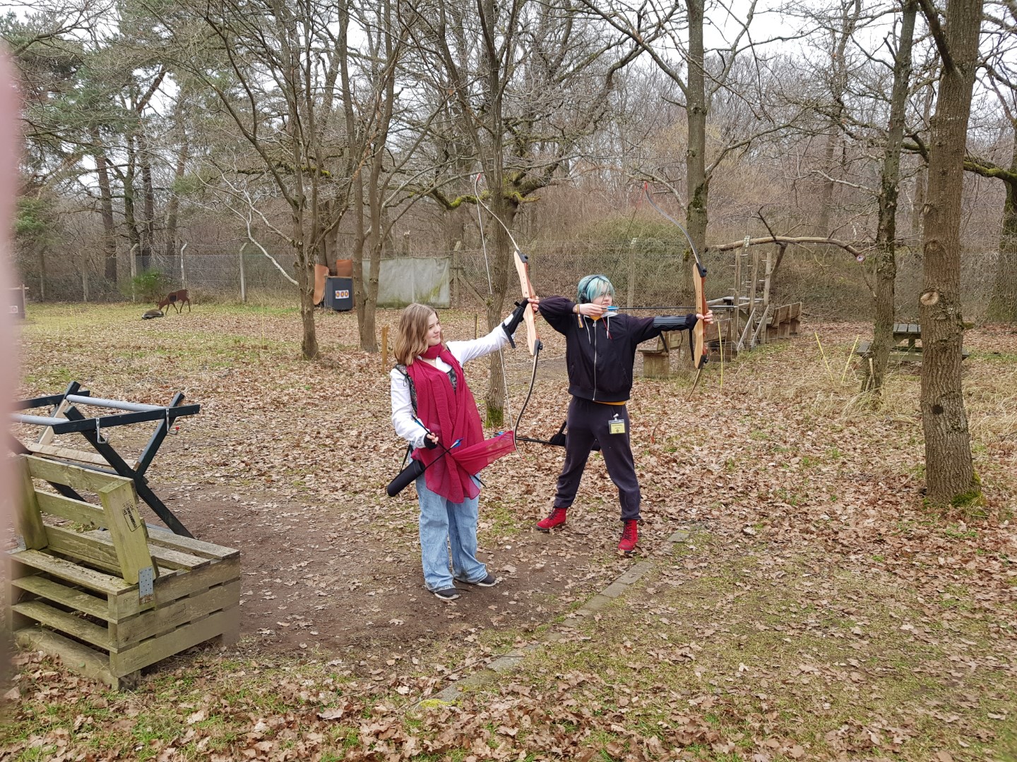Nein, keine Bange! Unsere Internatsschülerinnen und -schüler mussten sich nicht ihr Essen jagen. Am vergangenen Wochenende probierte sich dafür eine kleine Gruppe im Bogenschießen aus. Gemeinsam mit Internatserzieher Pascal Scholz, der auch Trainer für erlebnispädagogisches Bogenschießen ist, ging nach einer Trainingseinheit für alle auf den Bogenparcour der “Baden-Bowmen”.