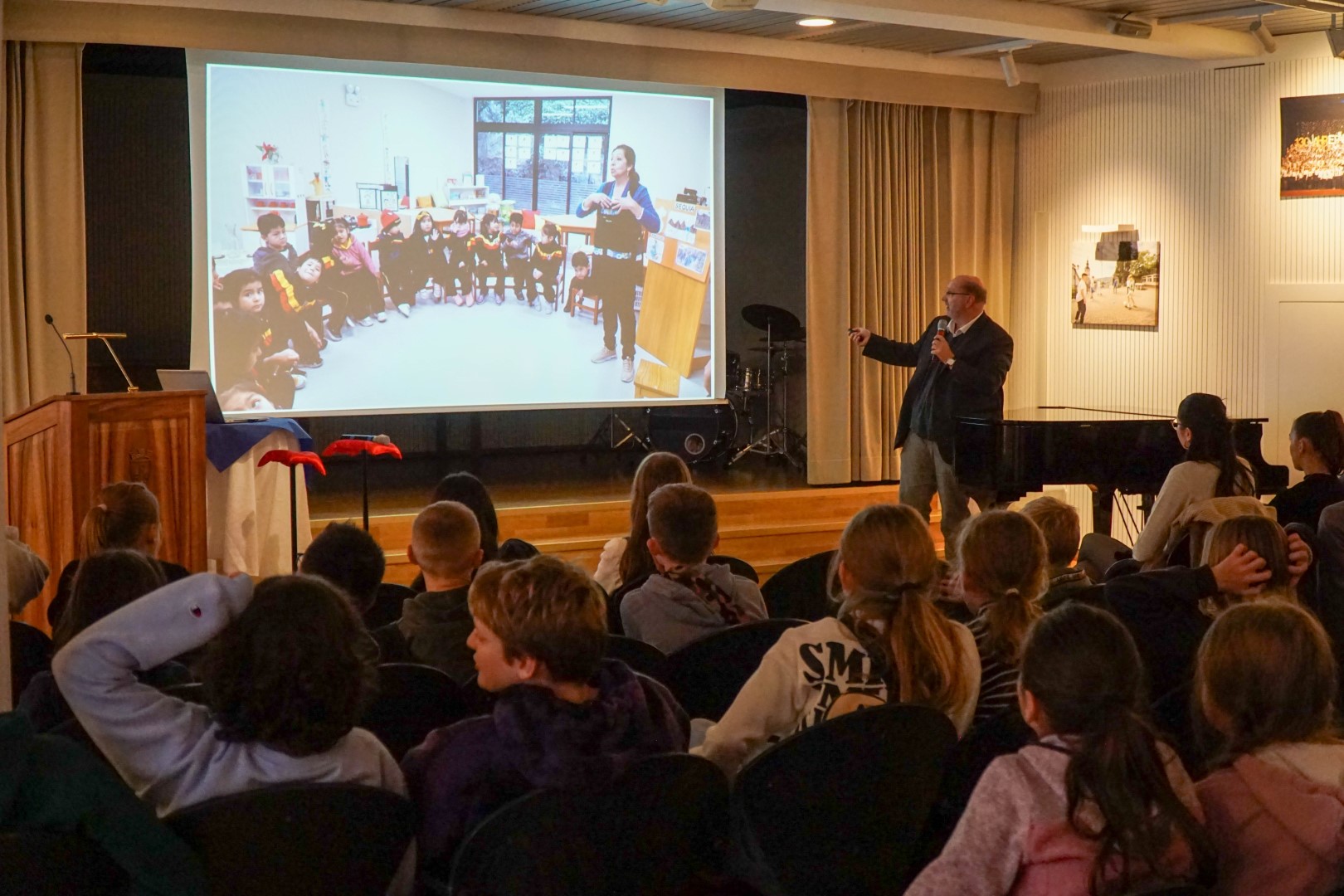 Mit dem Geld werden Schulen und ein Kindergarten des Hilfswerks in Lima unterstützt, sowie ein Frühstück für die Kinder finanziert. Dass das Geld bei denen ankommt, die es wirklich brauchen, konnte Jürgen Burst vom Kinderwerk Lima eindrucksvoll mit seiner Bilderpräsentation den Fünft- und Sechstklässlern in der Aula zeigen. Er nahm sie mit auf eine Reise nach Peru, berichtete über Land, Leute und die Lebensbedingungen der armen Familien.