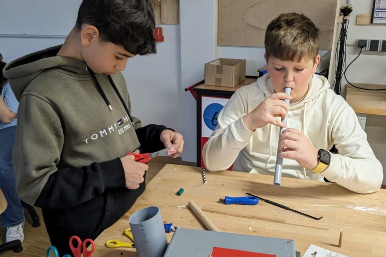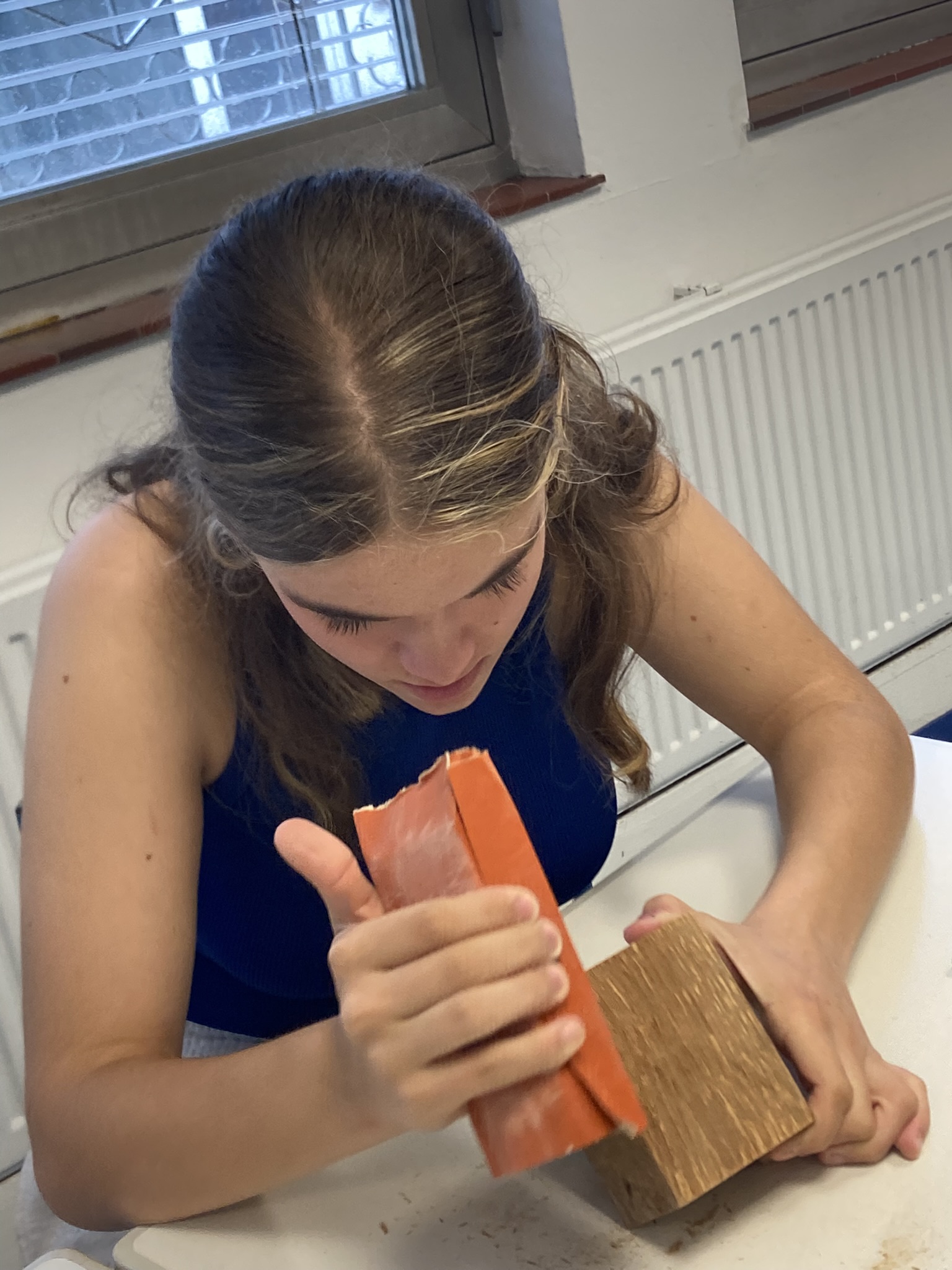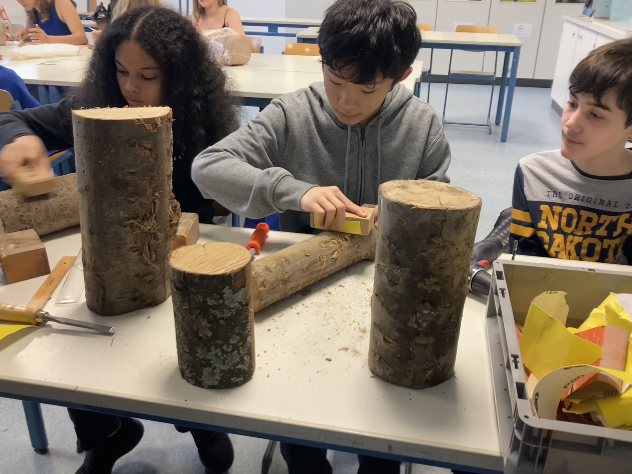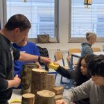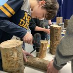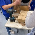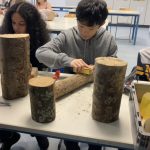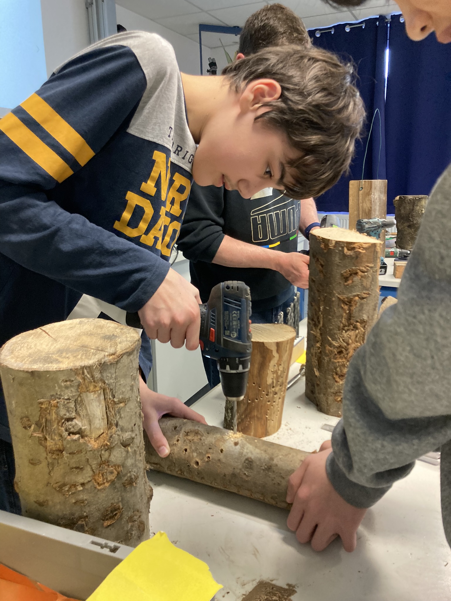 Aber – wenn wir nicht in den Wald können, kommt der Wald eben zu uns. Wir haben Buchenholz in den Biologie-Raum der Schule gebracht. Totholz bietet einen Lebensraum für eine Vielzahl von Organismen. Wir haben dem ganzen noch auf die Sprünge geholfen und Bruthöhlen für Wildbienen in die Holzstücke gebohrt.