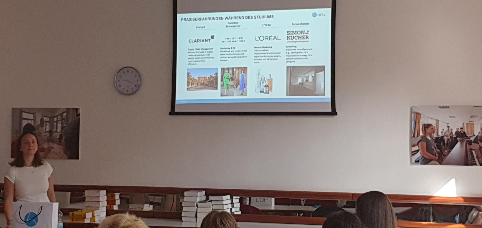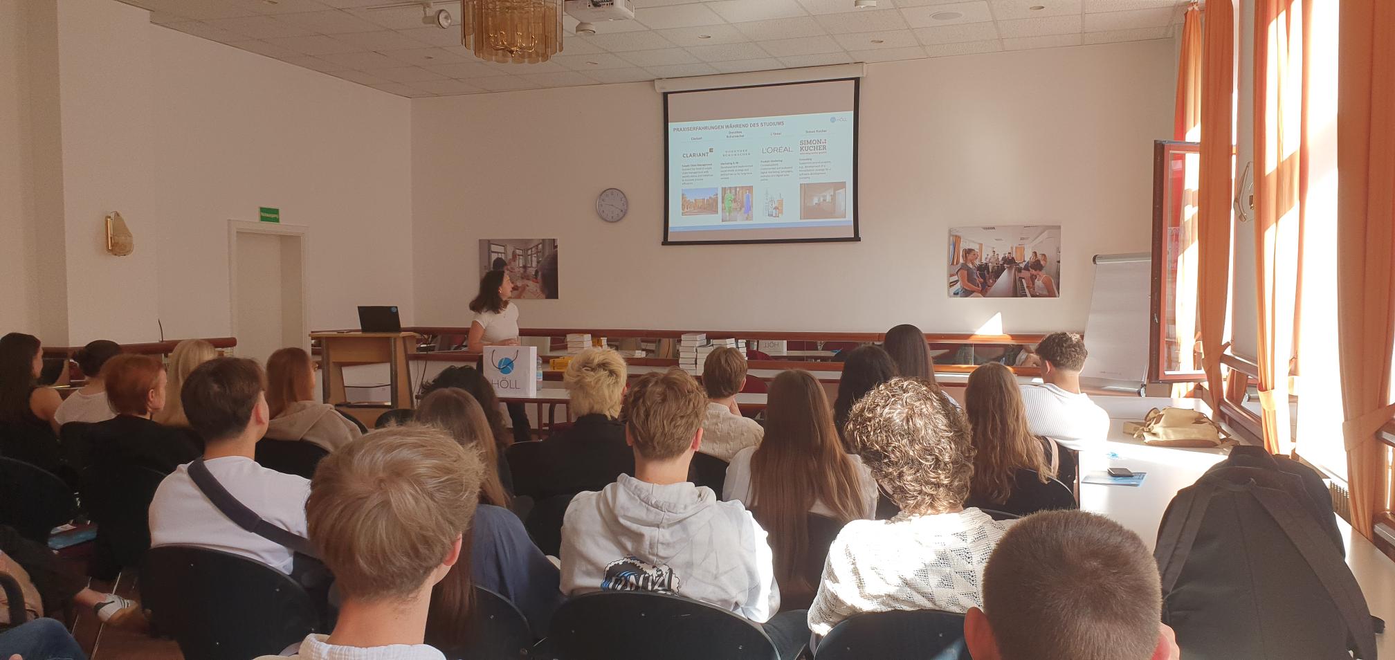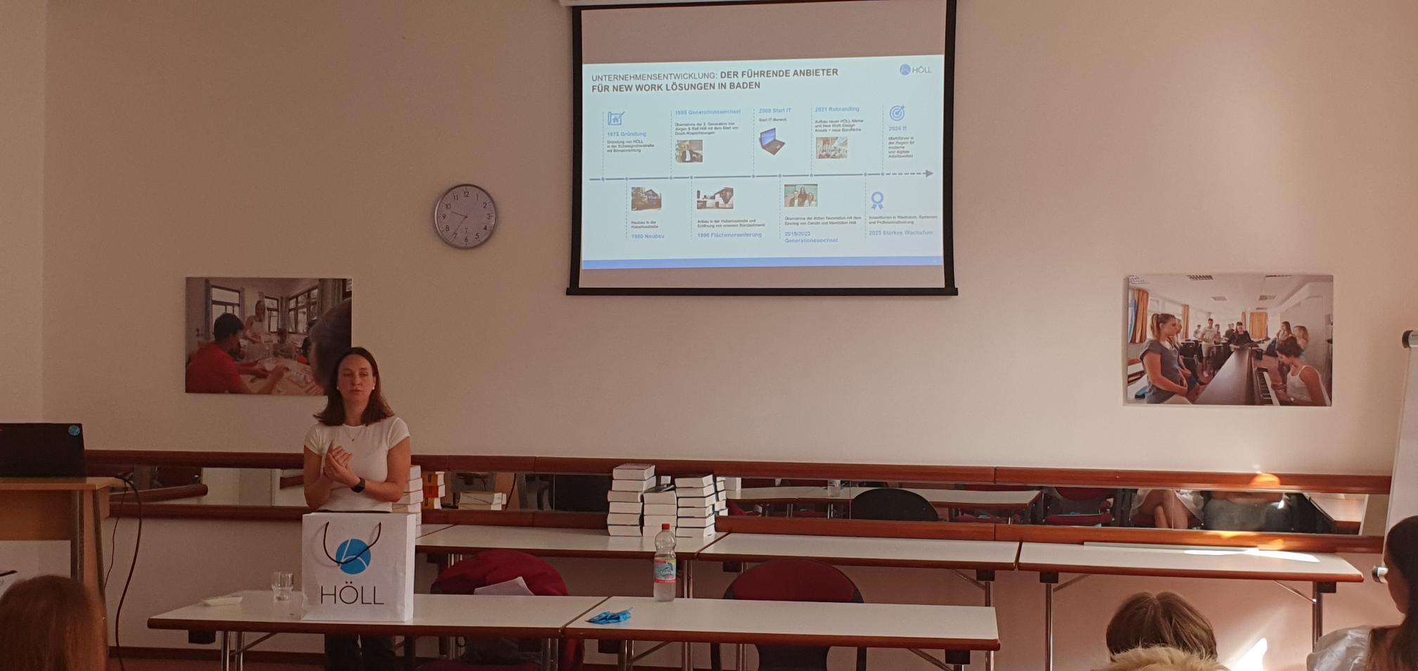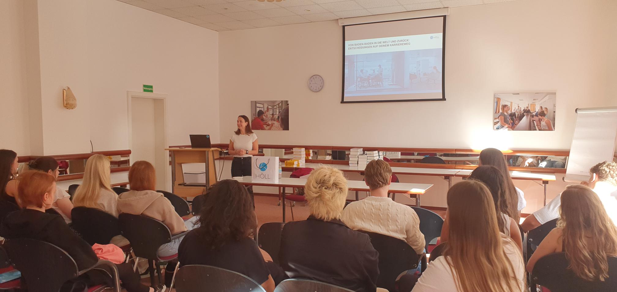 Die Entscheidung für das Familienunternehmen in Baden-Baden lag daher irgendwann nahe und so konnte Carolin Höll den Schülerinnen und Schüler auch die Ausbildungs- und Studienplätze in der Firma Horst Höll darstellen.