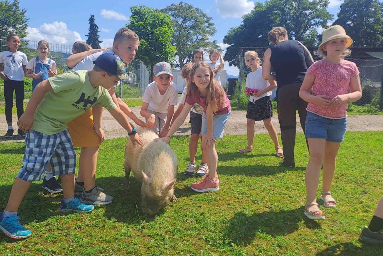 Danach lockte der Schlosspark mit seinen tollen Wiesen für ein wohlverdientes Picknick und freier Spielzeit. Aber auch ein Spaziergang durch den Park stand auf dem Programm dessen Ziel der große Robinson-Spielplatz war. Hier wurde den vielen Ideen erneut freier Lauf gelassen und die Kinder spielten vergnügt.