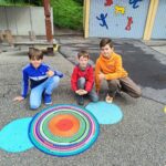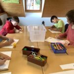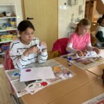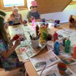 Kreativ sind wir auch geworden: Wir haben Wurfspiele gebastelt, Zauberblumen hergestellt, Window-Color-Bilder gemalt, Flechtbilder gestaltet, Kronkorken verbastelt und Blumentöpfe verschönert.