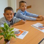 Auch für die Kinder gab es im Klassenzimmer eine Überraschung: Ein kleines Geschenkeset, besteht aus Stiften mit dem Schullogo, Radiergummi, Spitzer und Geordreick wartete auf alle. Dann durften alle den frisch ausgedruckten Stundenplan sorgfältig in den neuen Lernplaner einkleben und der Planer wurde Schritt für Schritt erklärt.