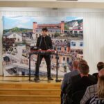 Zur musikalischen Freude des Nachmittags trug Sänger Marc Marshall bei, der Michael und Susanne Büchler mit Liedern aus seinem aktuellen Repertoire überraschte. Auch er nahm sich die Zeit, um beiden zu danken: Das spontane Projekt „Künstler auf dem Schlossberg“ direkt nach Corona war ein gelungenes Beispiel dafür, Schülerinnen und Schüler Kunst und Kultur lebhaft zu vermitteln.