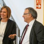 Als erster Redner trat Volker Schebesta, Staatssekretär im Kultusministerium, ans Pult. Er hob hervor, dass die freie Schule auf dem Schlossberg nicht nur ein Lernort, sondern vor allem ein Lebensort sei. Mit großem Einsatz hätten Susanne und Michael Büchler immer wieder innovative Impulse gesetzt – etwa mit dem besonderen Unterrichtskonzept „Der Lehrer als Gastgeber“, den baulichen Innovationen und dem Ausbau als digitale Schule. Die Landtagsabgeordnete Cornelia von Loga stellte in ihrer Rede den besonderen Stellenwert des Pädagogiums für die Stadt heraus: Die Schule gehöre zu Baden-Baden wie der Merkur, das Kurhaus, die Trinkhalle und die Oos. Sie blickte zurück auf die über hundertjährige Tradition der Schule seit 1887 und betonte: „Baden-Baden ist Familie Büchler – und Familie Büchler ist Baden-Baden.“