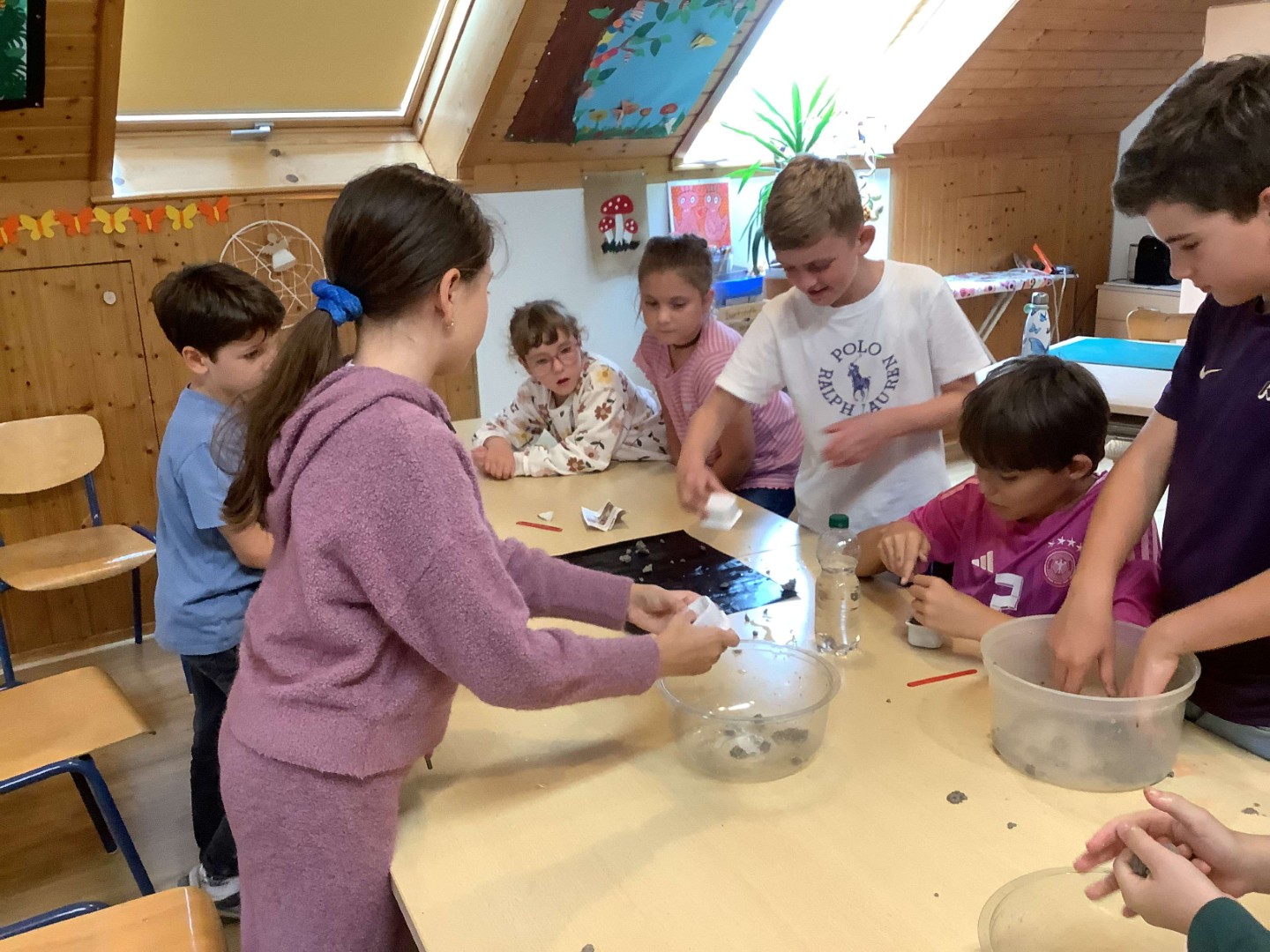 Die Sommerferienbetreuung war dieses Jahr einfach voller Highlights! Gleich mehrere spannende Ausflüge standen auf dem Plan. Im Sea Life in Speyer sind wir in die Unterwasserwelt eingetaucht und haben Fische, Rochen und andere Meeresbewohner aus nächster Nähe bestaunt. Auf dem riesigen Alla-Hopp-Spielplatz konnten wir uns so richtig austoben – ganze 6.300 Quadratmeter voller Klettergerüste, Schaukeln und Spielmöglichkeiten. Bei der Hitze waren wir außerdem am Wasserspielplatz am Rhein, wo wir plantschen, matschen und uns abkühlen konnten. Ein weiteres Highlight: Im Zoo Karlsruhe haben wir den kleinen Eisbären Mika kennengelernt – super süß! Und dann war da noch der Ausflug ins Bergwerk nach Oberwolfach: draußen 33 Grad, drinnen nur 11 Grad – das war ein ganz schön krasser Temperaturwechsel und ein richtiges Abenteuer unter Tage.