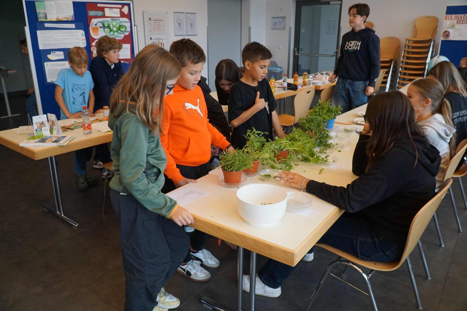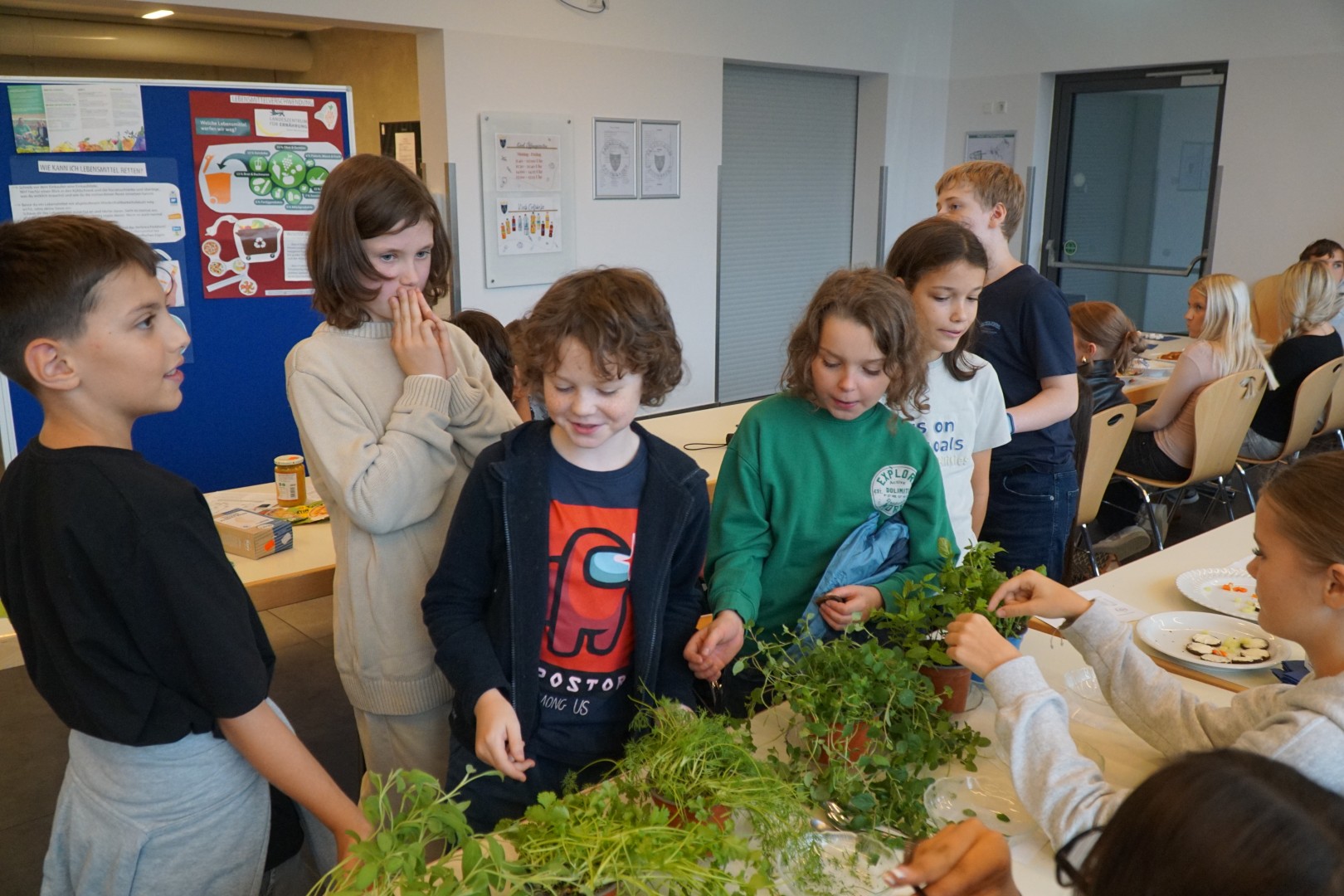 Eine weitere Station widmete sich den Kräutern: Hier war nicht nur das Erriechen und Erkennen gefragt, sondern auch das Zuordnen der einzelnen Pflanzen – eine echte Herausforderung für viele. Manche Kinder erlebten hier ein echtes Geschmackserlebnis, denn nicht alle Kräuter schmecken so, wie man sie vielleicht erwartet hätte!