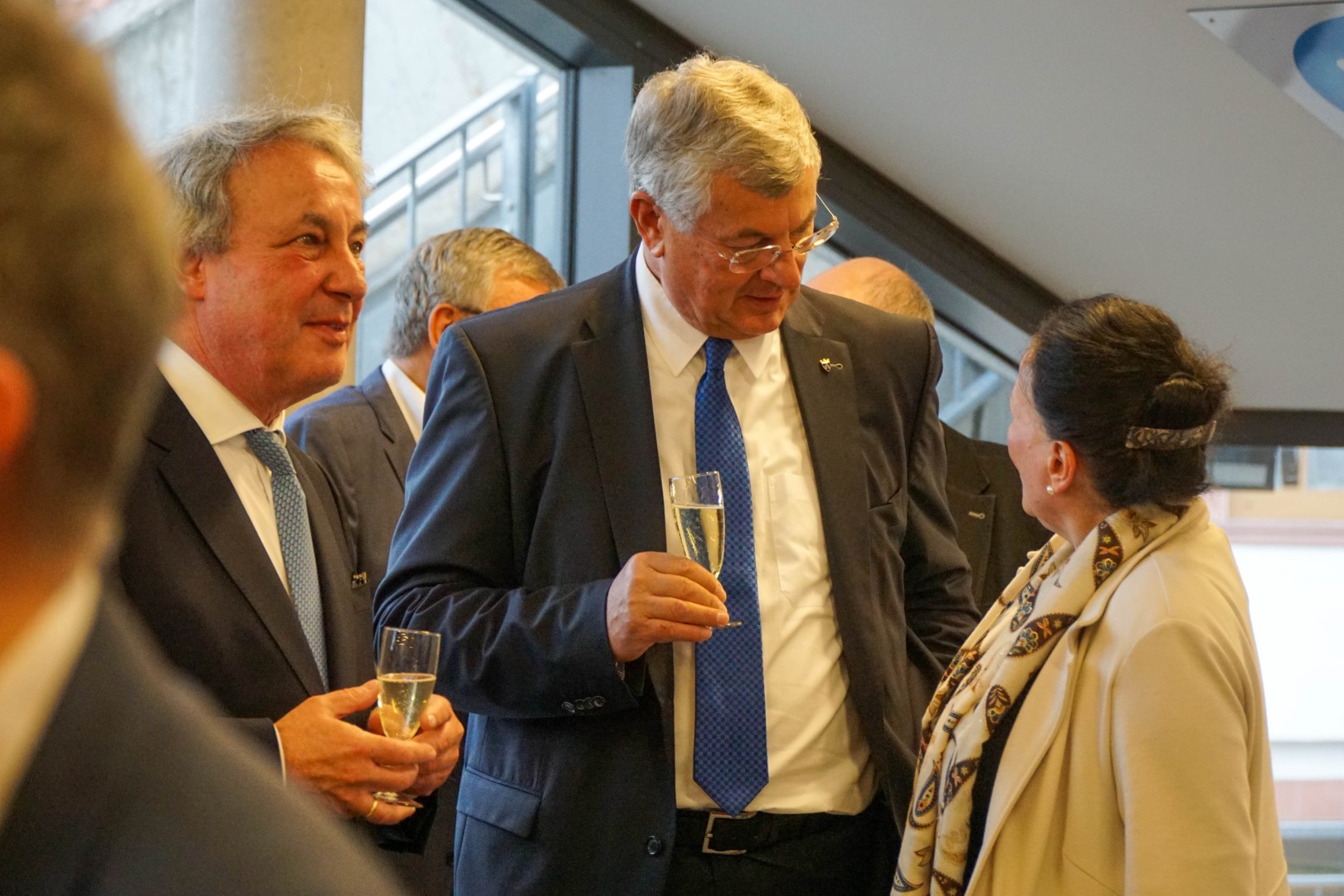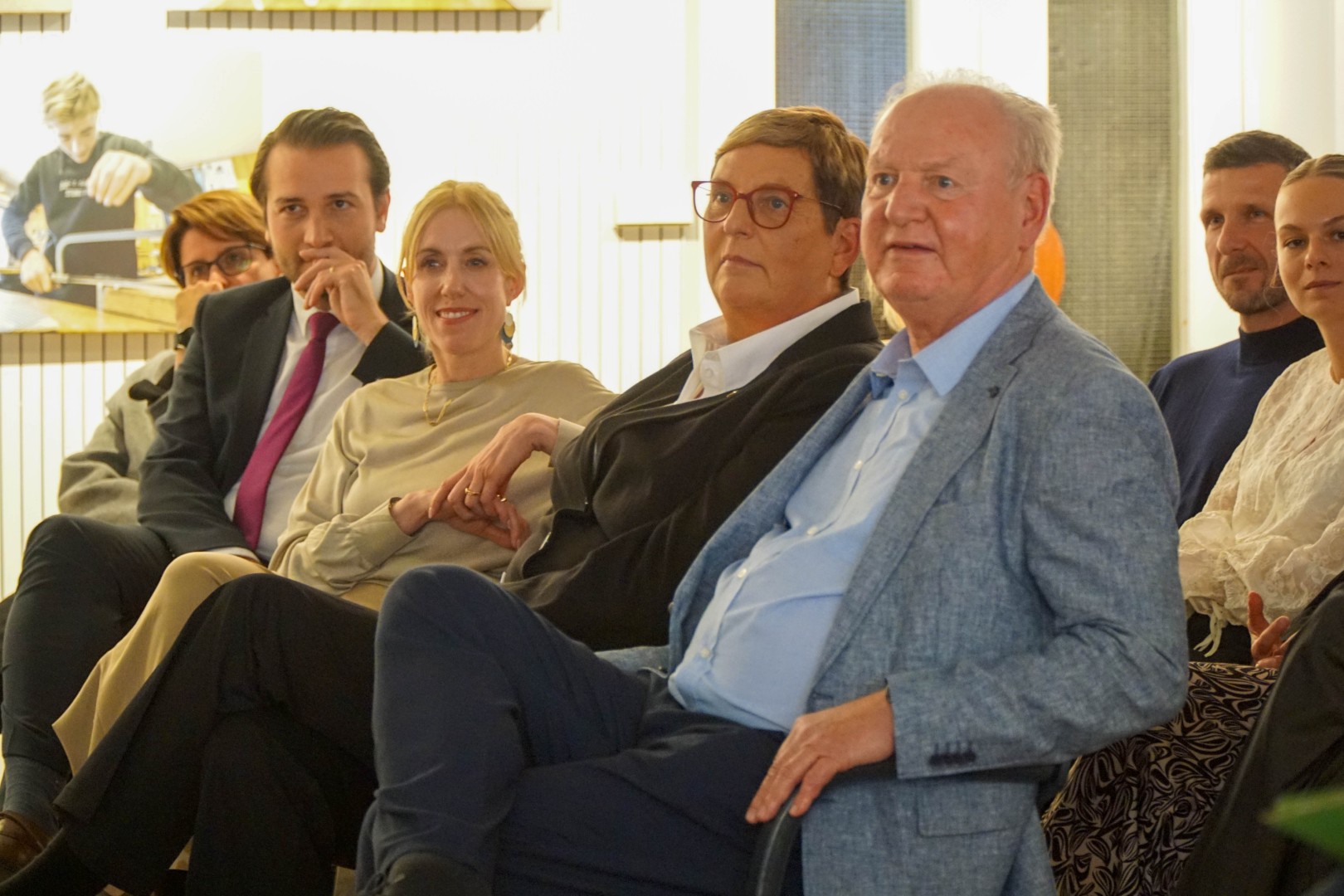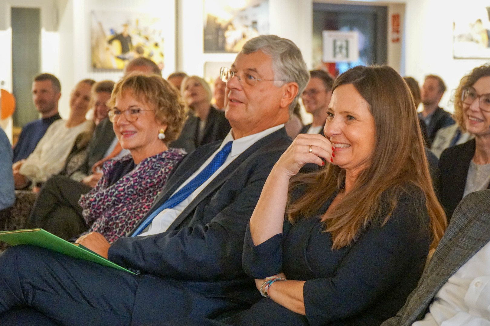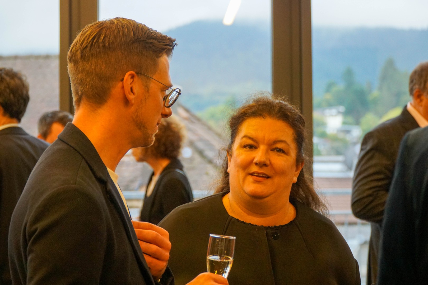 Als erster Redner trat Volker Schebesta, Staatssekretär im Kultusministerium, ans Pult. Er hob hervor, dass die freie Schule auf dem Schlossberg nicht nur ein Lernort, sondern vor allem ein Lebensort sei. Mit großem Einsatz hätten Susanne und Michael Büchler immer wieder innovative Impulse gesetzt – etwa mit dem besonderen Unterrichtskonzept „Der Lehrer als Gastgeber“, den baulichen Innovationen und dem Ausbau als digitale Schule. Die Landtagsabgeordnete Cornelia von Loga stellte in ihrer Rede den besonderen Stellenwert des Pädagogiums für die Stadt heraus: Die Schule gehöre zu Baden-Baden wie der Merkur, das Kurhaus, die Trinkhalle und die Oos. Sie blickte zurück auf die über hundertjährige Tradition der Schule seit 1887 und betonte: „Baden-Baden ist Familie Büchler – und Familie Büchler ist Baden-Baden.“
