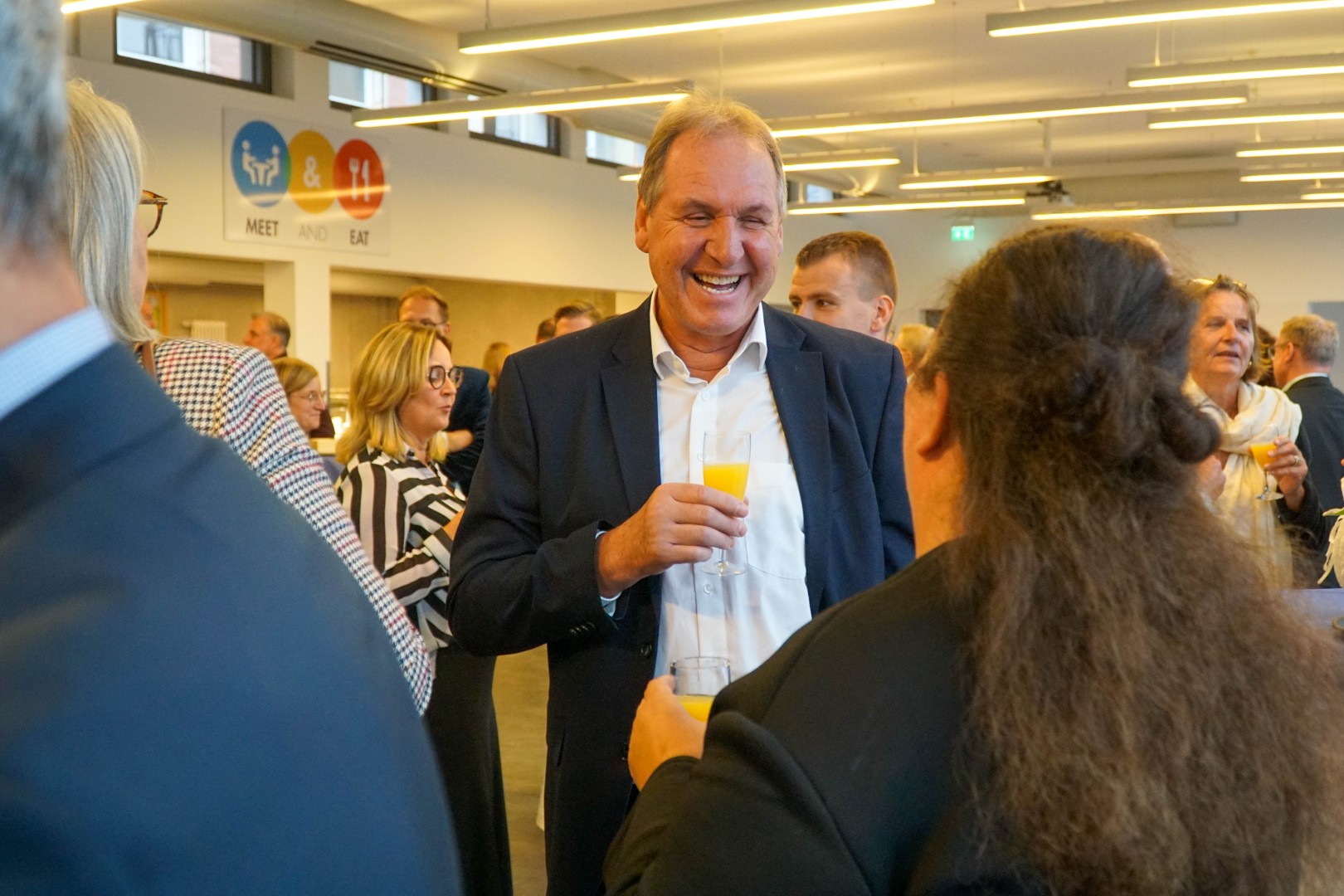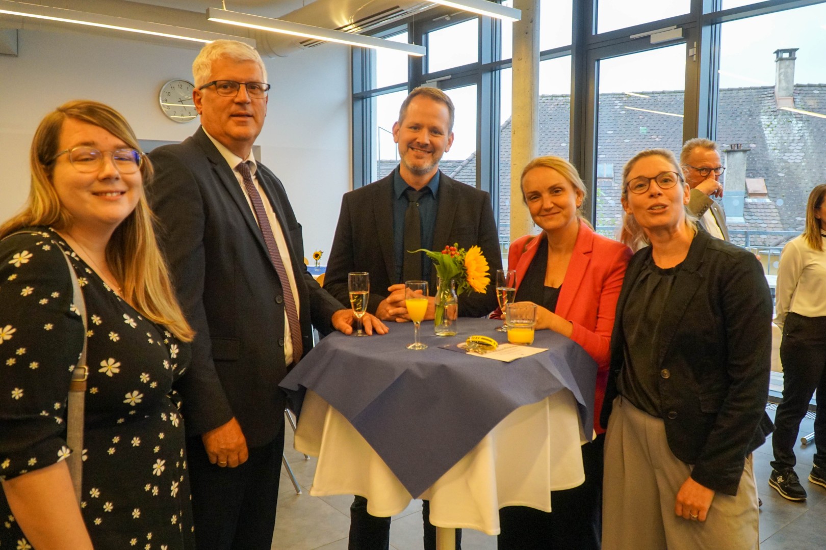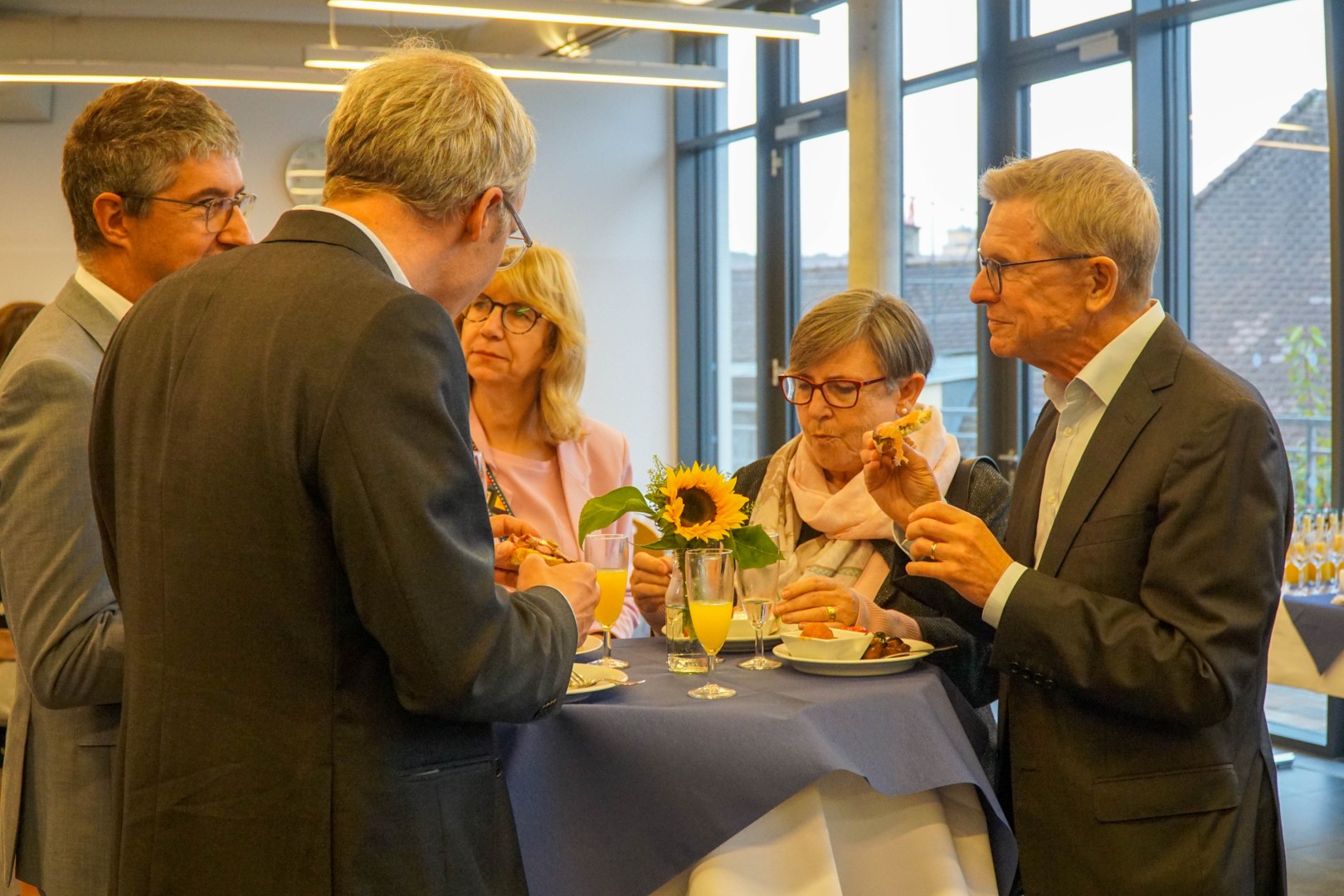 Eindrücke vom anschließenden Umtrunk in der Mensa/Cafeteria mit aktuellen und ehemaligen Kolleginnen und Kollegen, Baden-Badener Schulleitern, Altschülerinnen und Altschüler, Wegbegleiter aus Politik und Verbänden und natürlich der Familie.