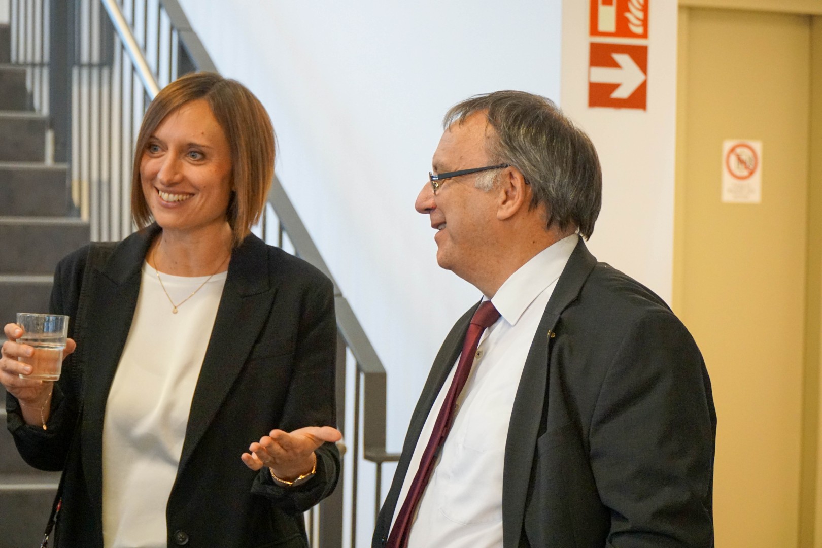 „Ich bin fast geneigt, ihren Worten zu glauben“, begann Michael Büchler seine Rede. In ihren Dankesworten blickten beide Büchlers auf die gemeinsame Zeit zurück. Ihre Botschaft an die neue Führung: Für die Sache brennen, sich einsetzen und die Begleitung der Schülerinnen und Schüler stets als zentrale Aufgabe annehmen. „Passen Sie gut auf unser Päda auf“, schloss Susanne Büchler ihre Rede und Michael Büchler ergänzte für die Zukunft: „Vergessen Sie nie: Beziehung war und ist die tragende Säule von Bildung und Erziehung.“
