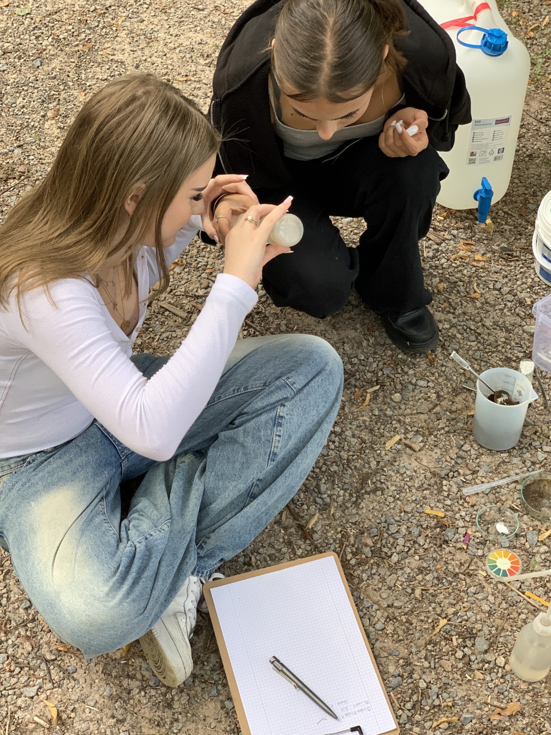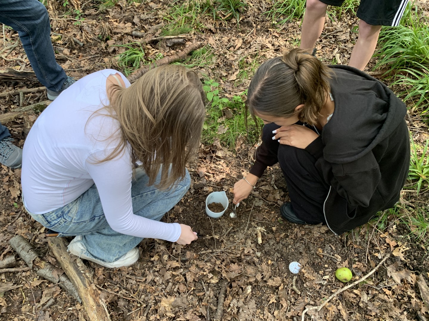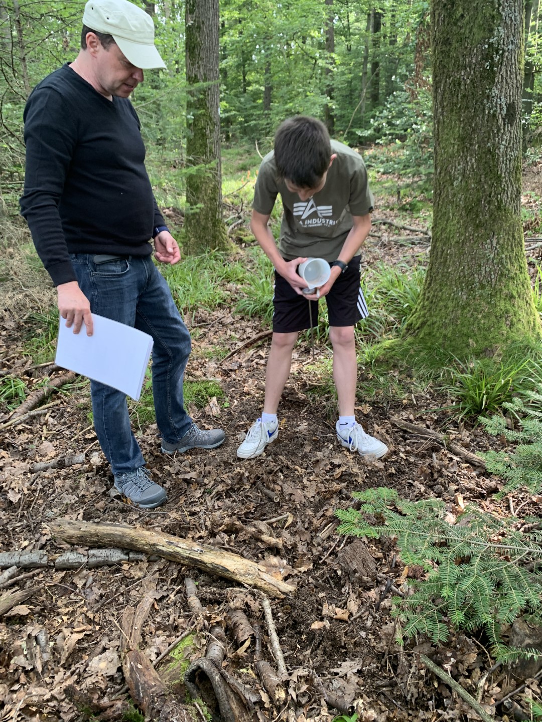 Diesen Fragen wollen wir nachgehen und haben dazu (Boden-)Temperatur, Luftfeuchtigkeit, Boden-pH und Kalkgehalt, Wasserdurchlässigkeit, Baumhöhen und Holzmasse einzelner Bäume bestimmt. Die erhobenen Daten werden der nächsten Waldgruppe im September übergeben, die die Projekte weiterführen und zusätzlich noch weitere spannende Forschungsprojekte entwickeln wird.