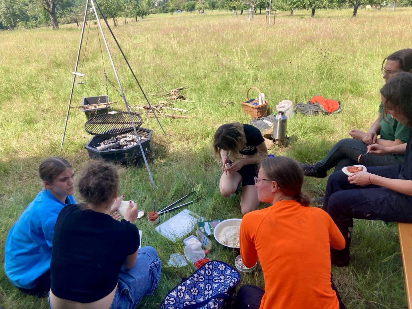 Auch uns wohl gefühlt, die Ruhe genossen und unsere Akkus aufgetankt haben wir. Besonders gut ging das bei einer wunderbaren Aussicht mit Pizza-Calzone – natürlich selbst gebacken überm Lagefeuer. Dazu Tee – ebenfalls über dem Feuer gekocht und gegrillten Marshmallows.