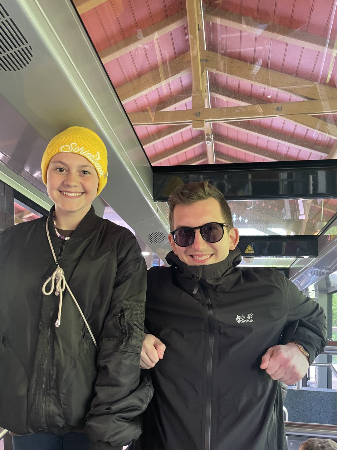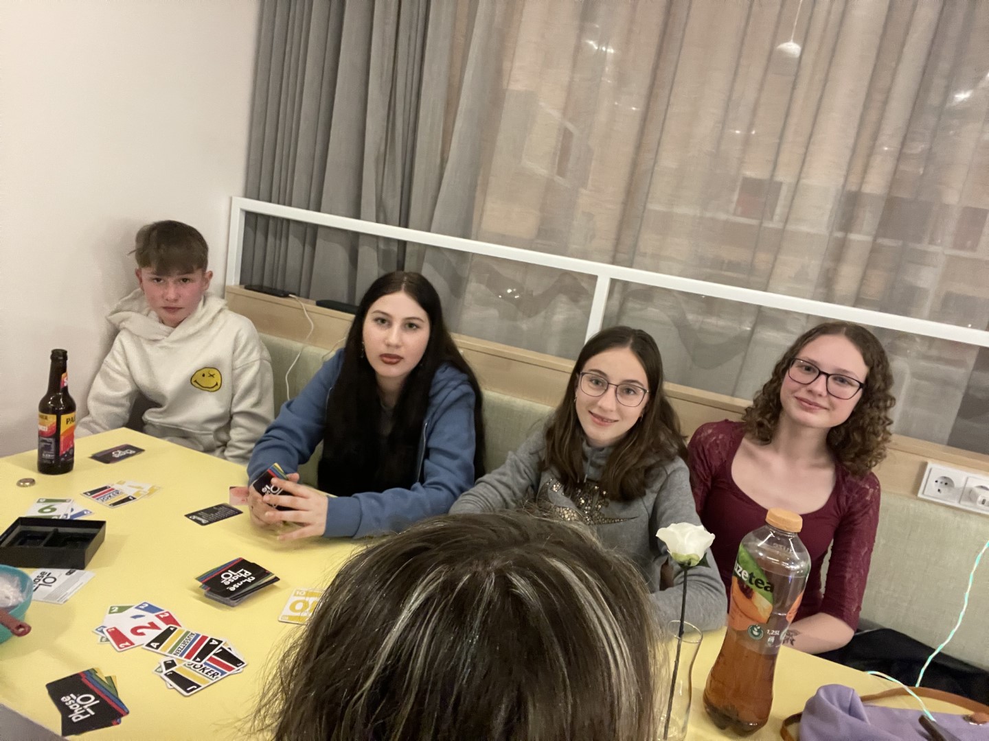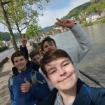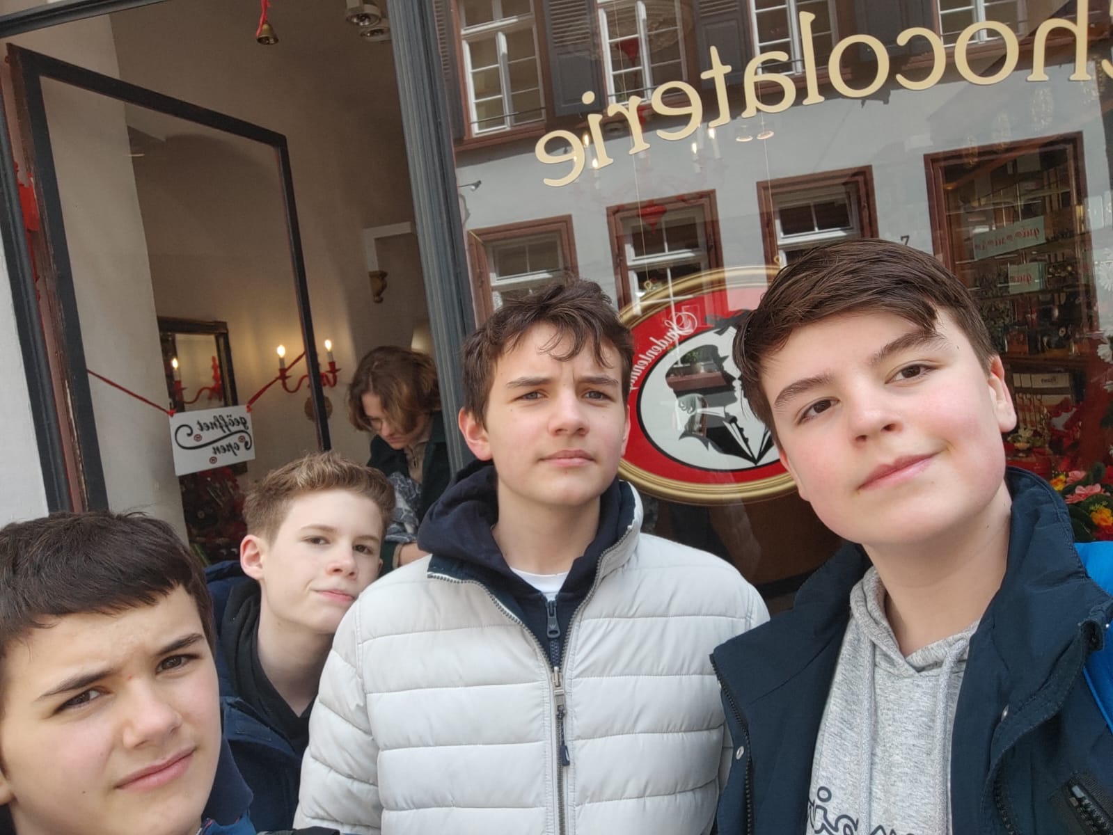 Am Ankunftstag, den 22.4.2024, fuhren die Klassen RS 7A und B mit ihren Klassenlehrerinnen Frau Schöner und Frau Graf-Wieler sowie mit Herrn Wojnowski nach Heidelberg und brachen gleich in die Altstadt auf. Dort durften die Schüler*innen erstmalig alleine die Altstadt kennen lernen. Um 14:00 Uhr versammelten sich die Klassen mit den Lehrerinnen und dem Lehrer auf dem Universitätsplatz. Dort haben wir dann Blätter mit Stadtplänen und Aufgaben ausgeteilt bekommen. Danach sind alle losgelaufen und haben die Sehenswürdigkeiten in der Heidelberger Altstadt gesucht. Hierfür mussten die Gruppen immer Selfies mit den Sehenswürdigkeiten an die Lehrer:innen schicken. Als wir alle elf Stationen gefunden hatten, trafen wir uns am Fuße des Schlangenwegs, um dort gemeinsam auf den Philosophenweg zu wandern. Das Gewinner-Team bekam eine Überraschung. Diese war eine Packung mit Studentenküssen: Das ist eine bekannte, handgemachte Praline aus Heidelberg. Anschließend wanderten wir noch auf die sogenannte Thinkstätte auf den Heiligenberg, der gegenüber vom Schloss liegt. Die Thinkstätte ist ein ehemaliges, Open Air Theater im antiken-römischen Stil, das von den Nationalsozialisten erbaut worden ist. Hier konnten wir auf die alten Gebäude klettern und uns Wettrennen über die Stufen hinweg liefern. Abends haben wir dann einen Spieleabend in der Lobby der Unterkunft gemacht.