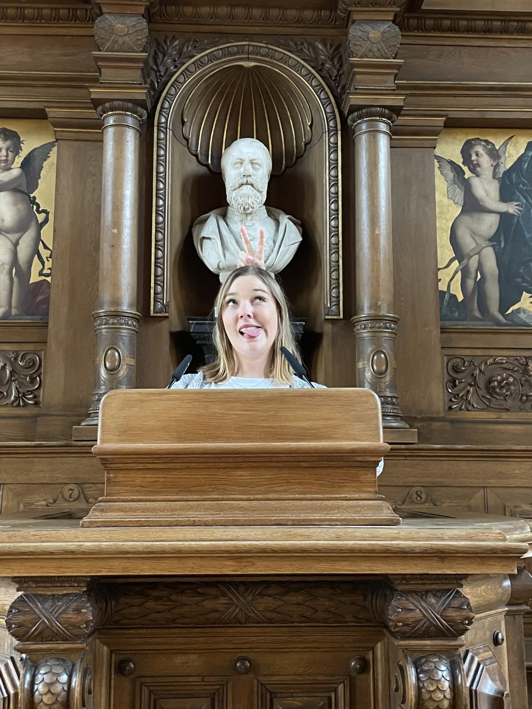 Am nächsten und letzten Tag unserer Fahrt waren wir im Kurpfälzischen Museum und besuchten eine Kunstausstellung zum Thema Fälschungen. Wir konnten uns circa eine Stunde lang im Museum frei bewegen und die Ausstellungen mit kostenlosen Audio Guides besuchen. Danach konnten alle, die wollten, noch mit Frau Graf-Wieler in den Studenten Karzer sowie die Alte Aula gehen. Dort machten wir auch Fotos am Rednerpult des Rektors und bereiteten uns so auf unsere Karriere in der Uni vor.