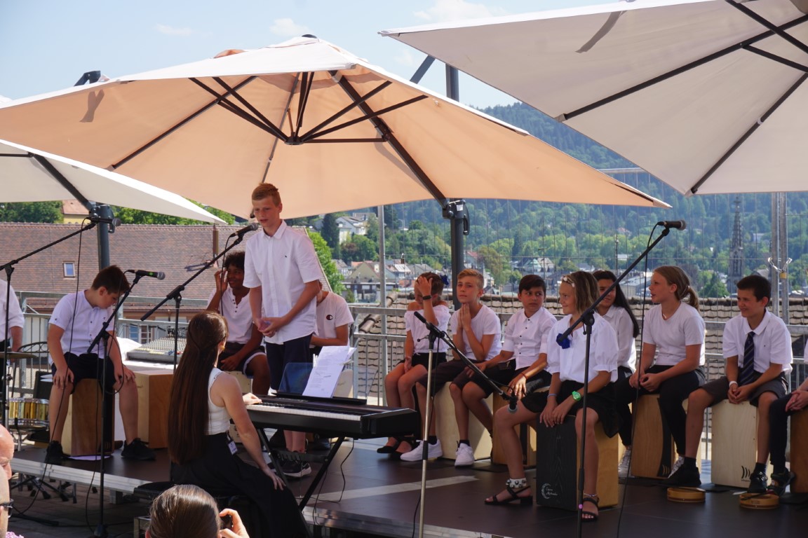 Über schlechtes Wetter konnten wir uns am letzten Freitagnachmittag vor den Sommerferien sicher nicht beklagen, denn bei hochsommerlichen Temperaturen bot der Schlossberg einen bunten Mix aus Tanz, Musik, Akrobatik, gutem Essen und Trinken und jeder Menge Spaß.