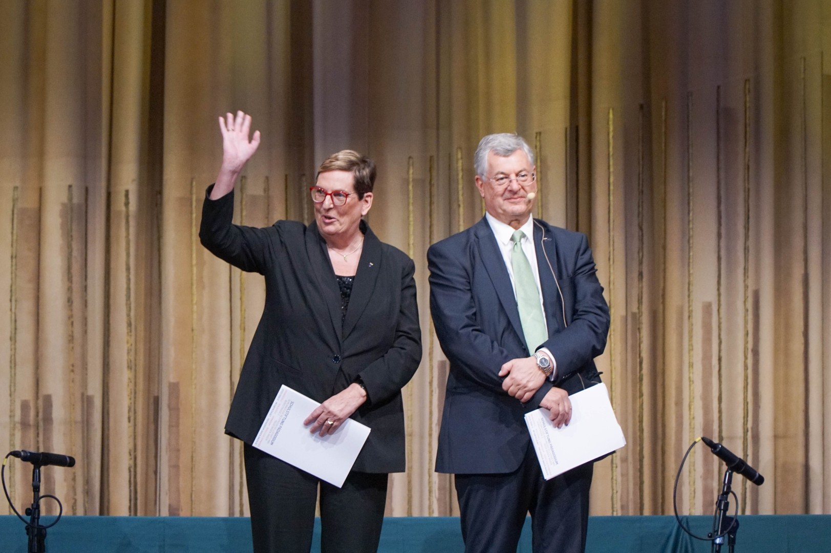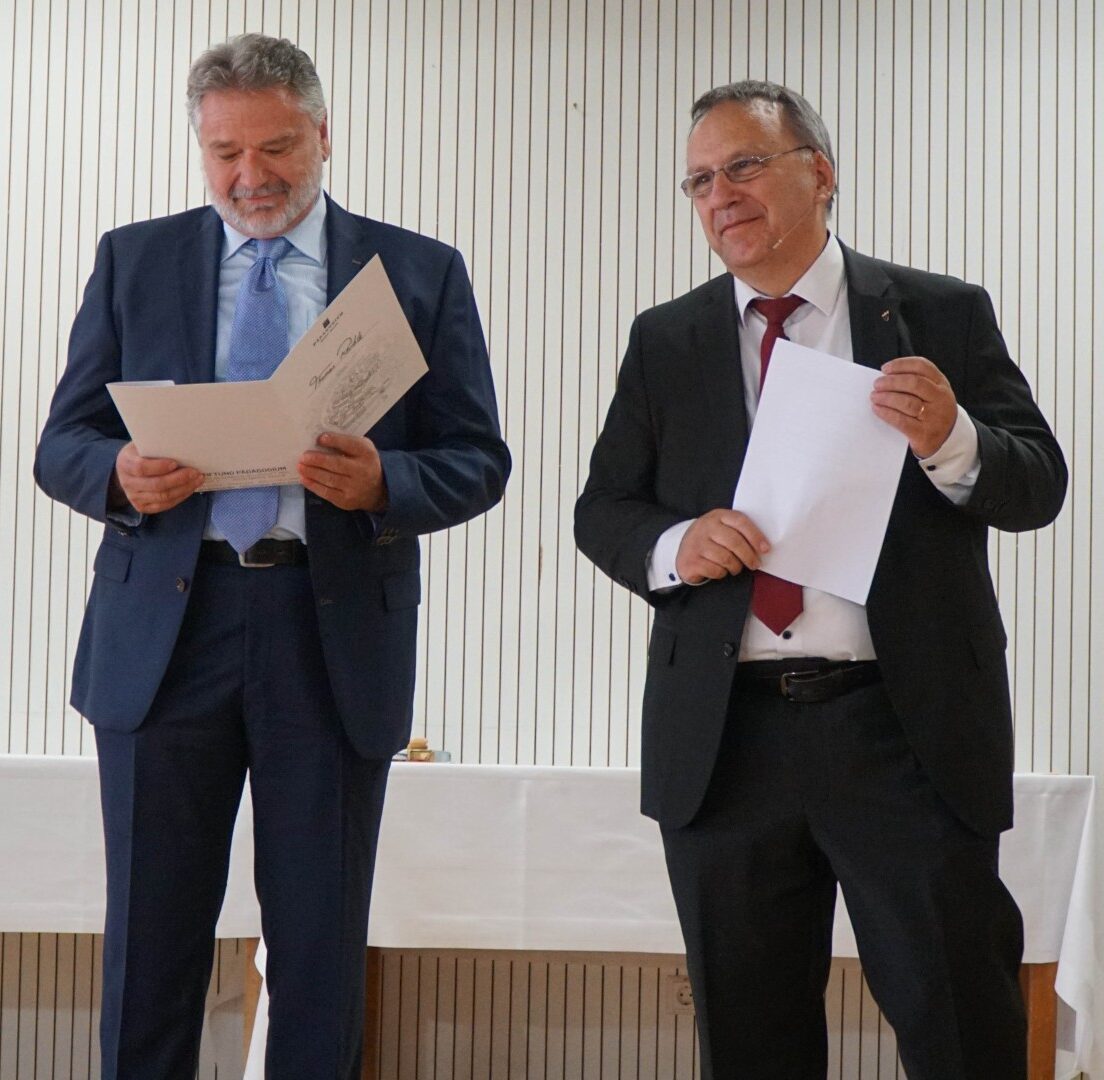 Zum Ende des Festakts galt der Abiturientin Sophia Peter und Vefa-Vorsitzender Marion Mokesch besonderer Applaus: Für langjähriges, herausragendes ehrenamtliches Engagement wurden beide mit der Hermann-Büchler-Medaille ausgezeichnet.