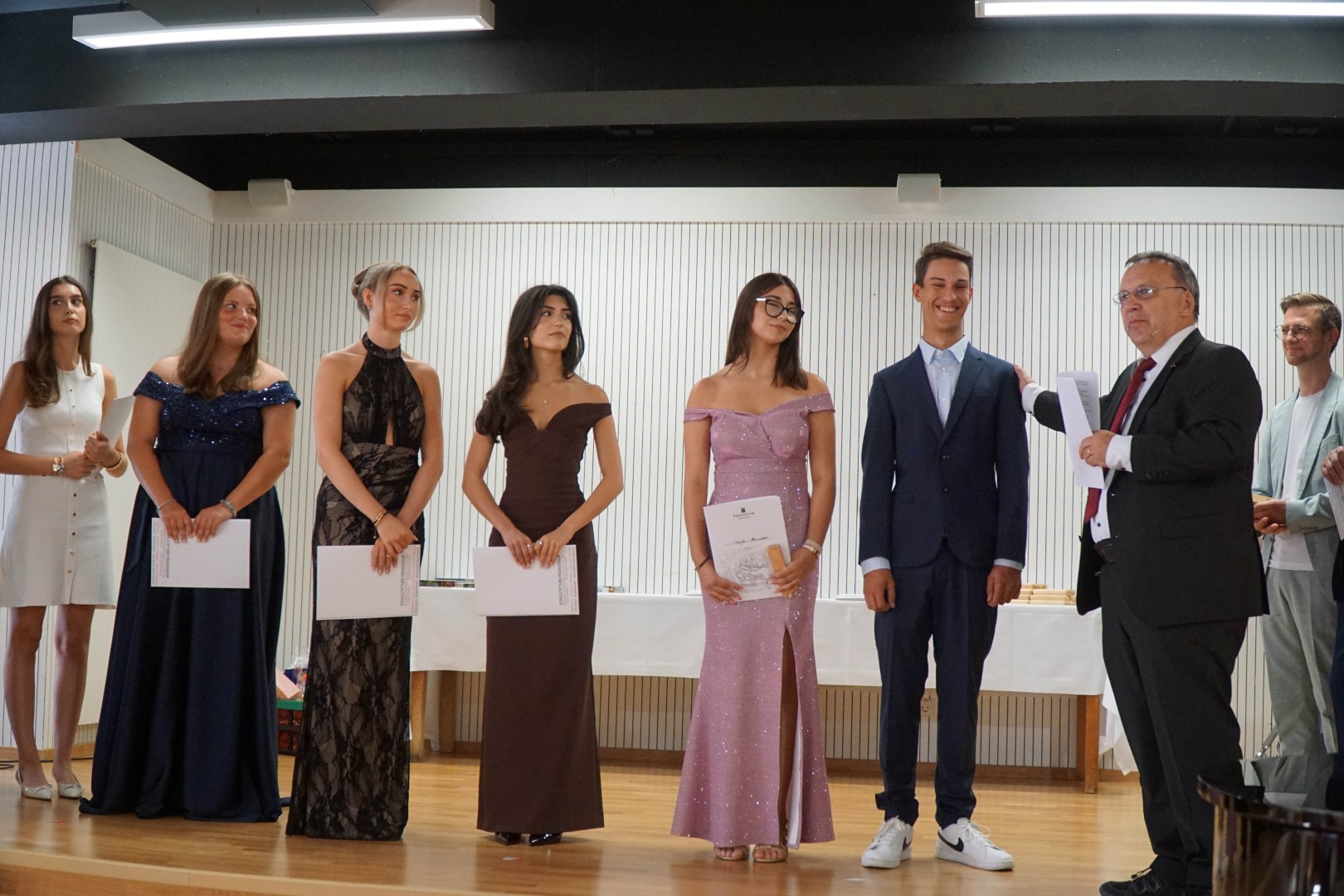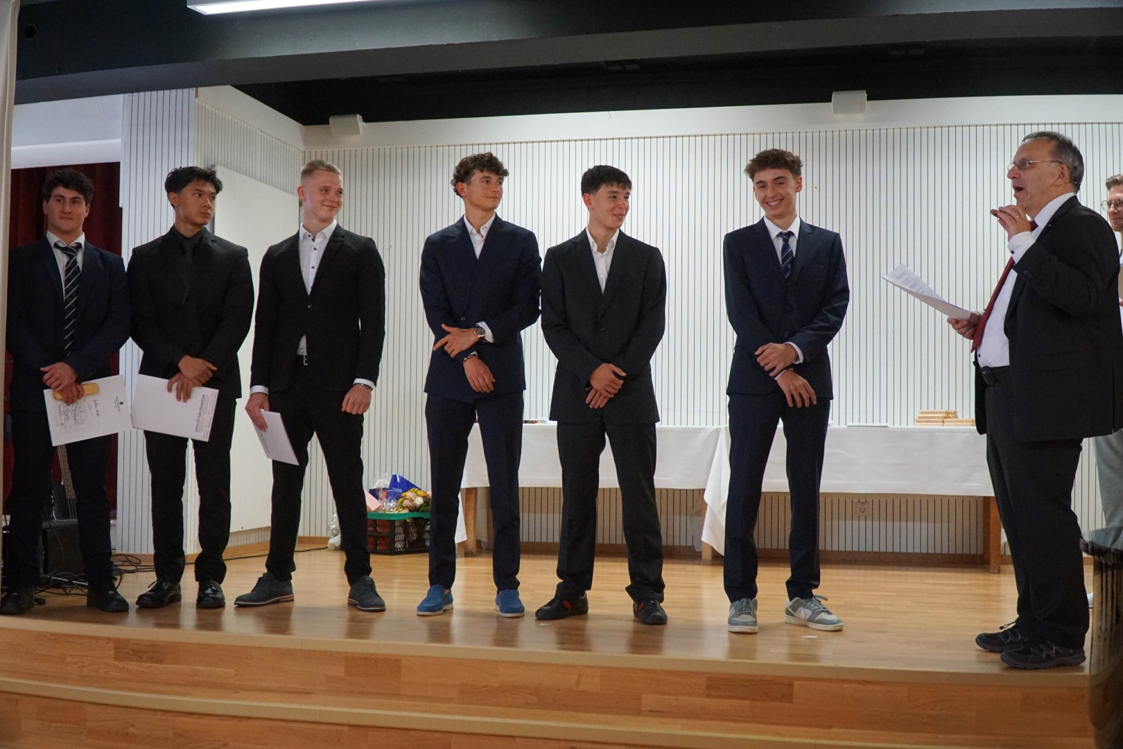 Ein besonderer Moment war die Verabschiedung von Abteilungsleiter Thomas Raible, der seine letzte Realschulabschlussfeier am Pädagogium begleitete. Ihm wurde ein symbolisches „Zeugnis“ von den Kolleginnen und Kollegen überreicht – ein Moment, der ihn sichtlich bewegte. Ein großer Dank geht an ihn für seine jahrzehntelange und erfolgreiche Arbeit als Lehrer, Schulleiter und Abteilungsleiter der Realschule am Pädagogium.
