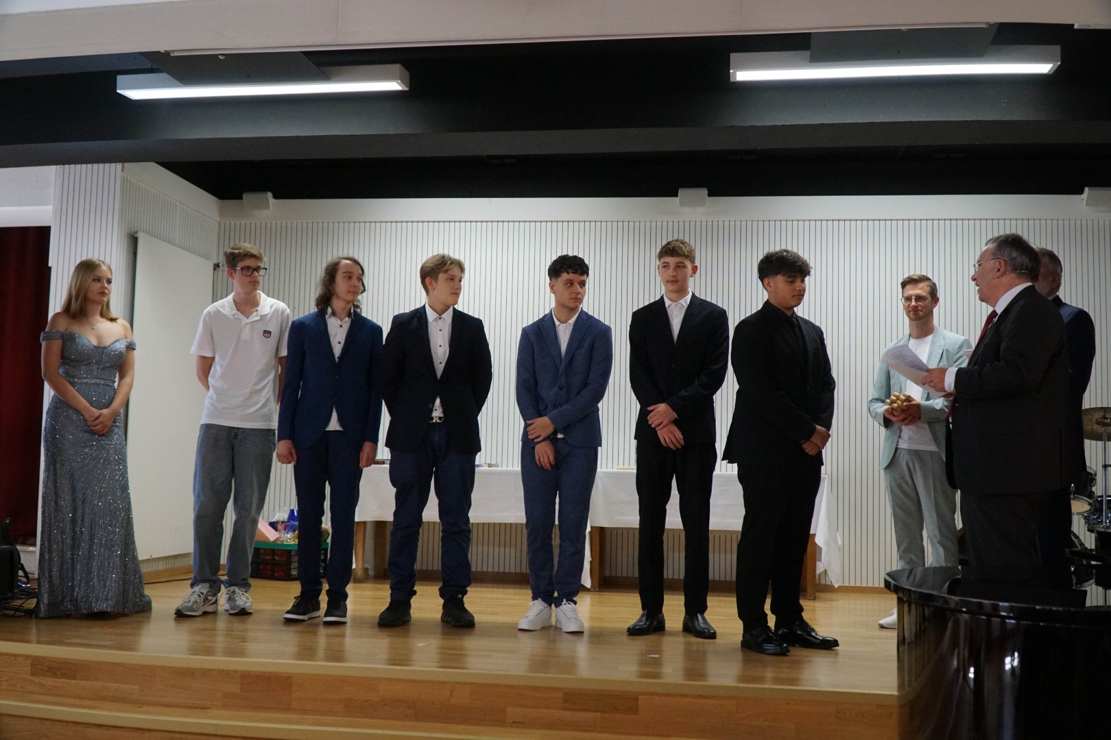 Nach der Übergabe der Zeugnisse und Preise für herausragende Leistungen übernahmen die Schülerinnen und Schüler das Kommando: Sie ehrten sich anschließend selbst mit humorvollen Auszeichnungen – etwa für den „Sportlichsten“, den „Zu-Spät-Kommer“ oder den „Hacker“. Damit wurde der Fokus bewusst auch auf das Persönliche und Gemeinschaftliche gelegt. Für gute Unterhaltung sorgte dabei die Schulband „Red Ink“ unter der Leitung von Manuel Fast.