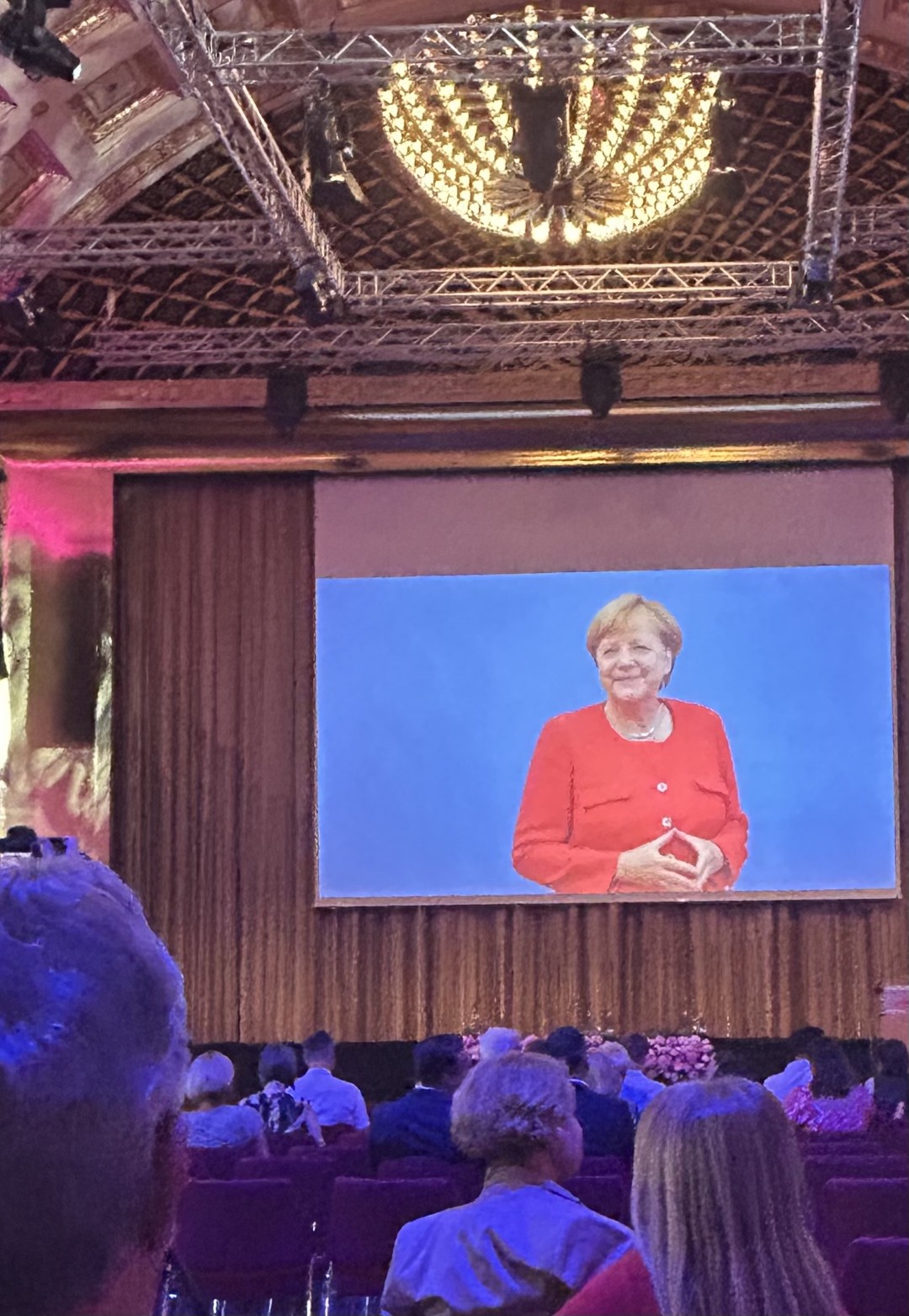 Dank der Einladung von Karl-Heinz Kögel konnten wir  mit 50 Schüler*innen im Benazet-Saal zu Gast sein, um zu erleben, wie die Altkanzlerin durch MediaControl einen Ehrenpreis für ihre Autobiografie erhielt. Es gab Geschichte zum Anfassen, Geschichte wurde erlebt, erklärt und verstanden, indem authentisch gezeigt wurde, dass „Freiheit demokratische Bedingungen braucht. Diese müsste man verteidigen, was dann gelingt, wenn wir gemeinsam und sich jeder für sich dafür einsetzt!“, so Angela Merkel.