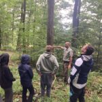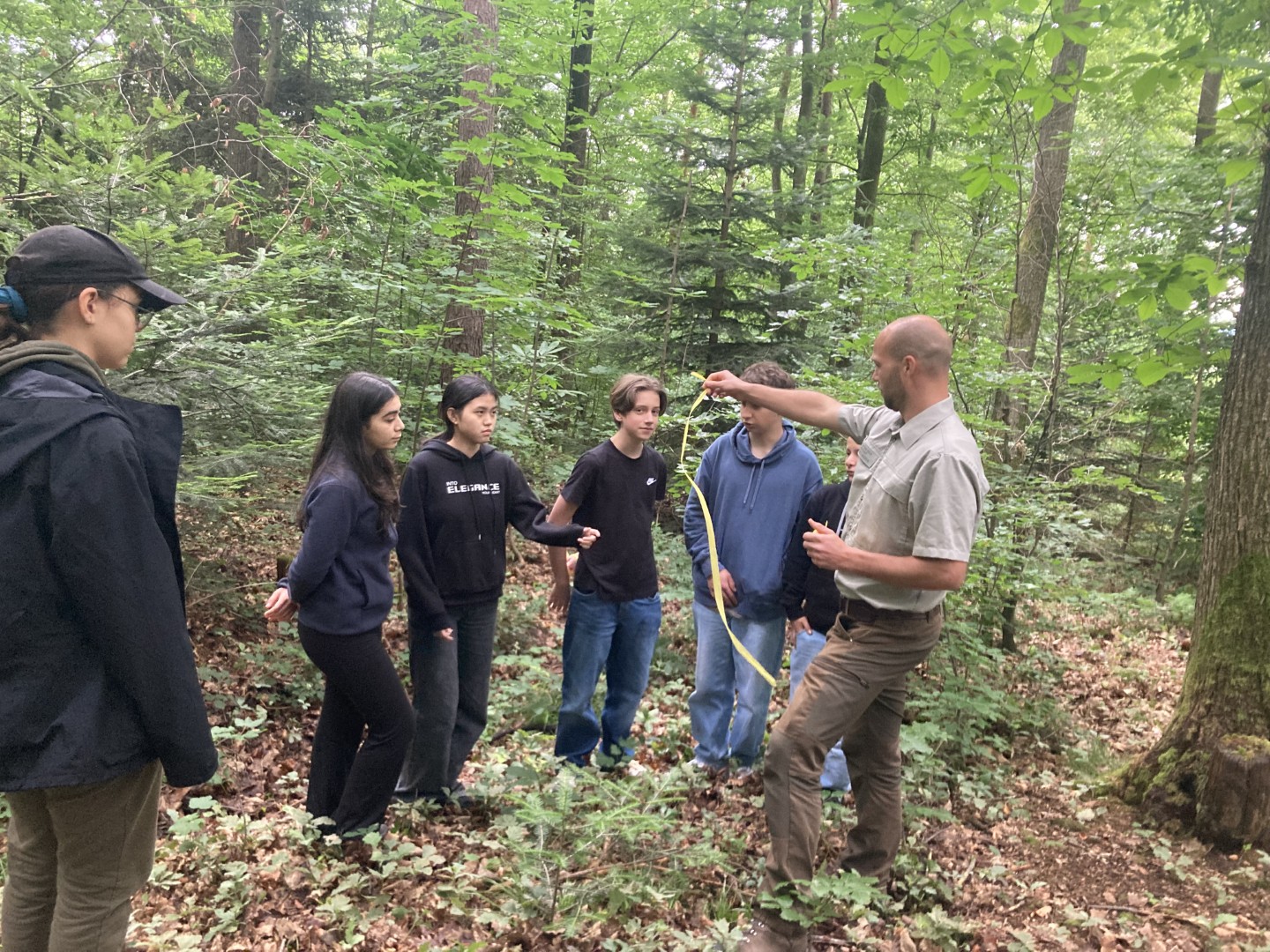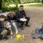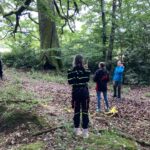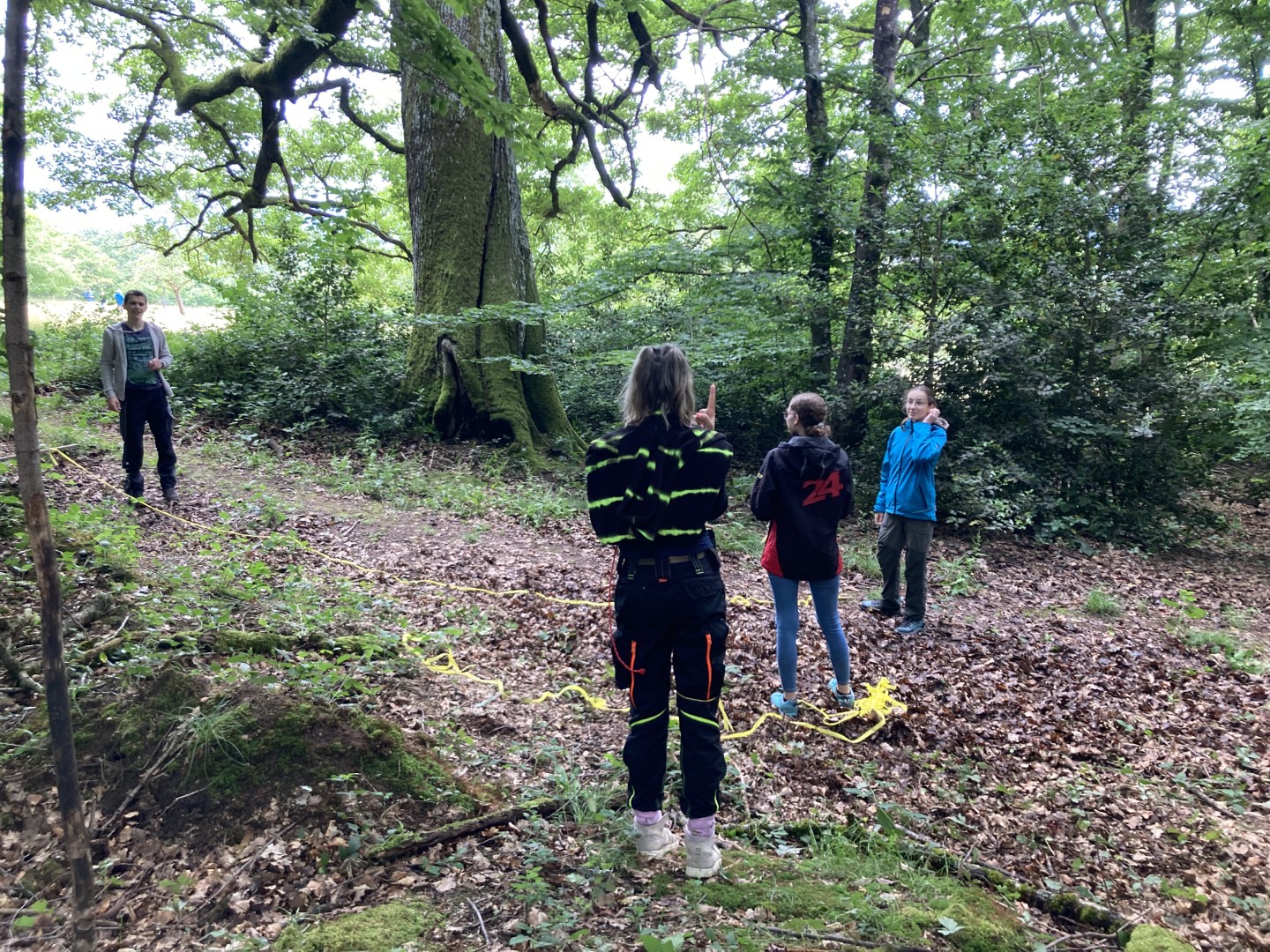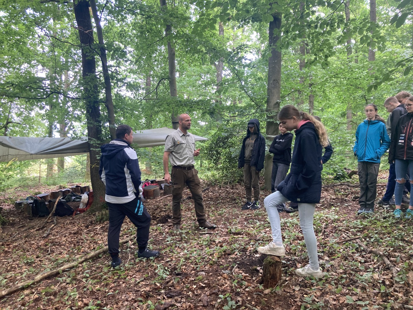 Unsere Schüler*innen durften dabei selbst einmal Förster spielen und Bäume markieren, die sie fällen würden und hinterher der Gruppe erklären warum. Bei den anschließenden Überlegungen, was man mit dem erwirtschafteten Holz machen könnte, kam dann auch noch jede Menge Mathe zum Einsatz – wir haben ausgerechnet wie viele Kubikmeter Holz in so einem Baum stecken. Die Formel für die Volumenberechnung eine Zylinders musste her, die Baumhöhe musste geschätzt und der Stammdurchmesser bestimmt werden. Schülerzitat: “So habe ich das viel besser verstanden, als im Matheunterricht :-)”.
