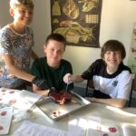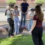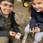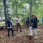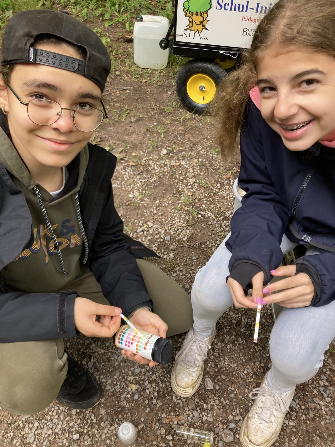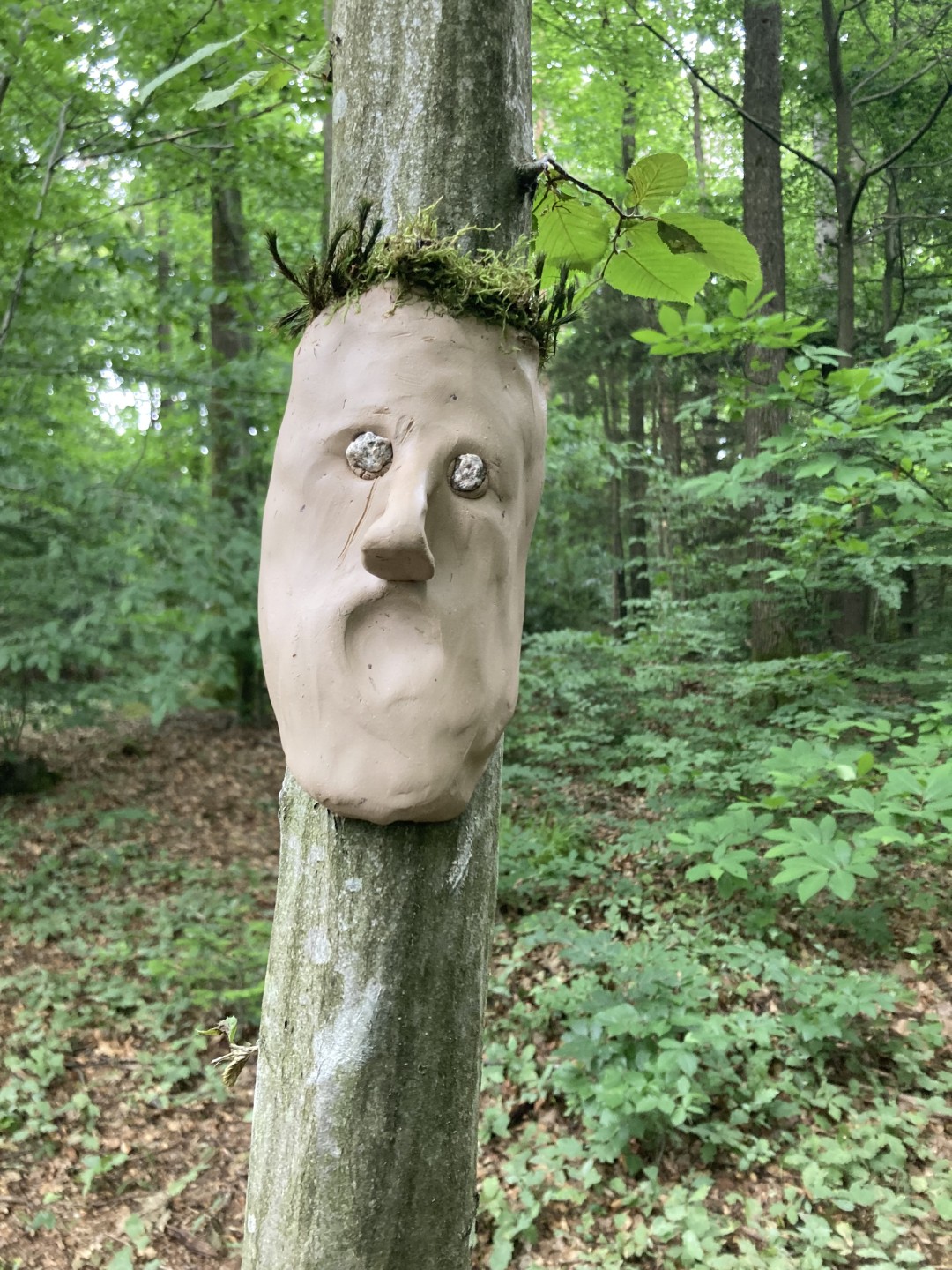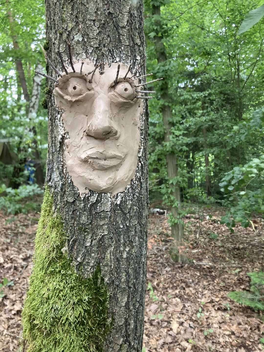 Nach einer kurzen Mittagspause unter unserer Wetterschutzplane oder in den selbstgebauten Waldhütten, haben wir uns schließlich weiter mit unseren Forschungsprojekten beschäftigt: Wasserproben wurden genommen, Bodenuntersuchungen zum pH-Wert, Kalkgehalt und Wasserhaltevermögen durchgeführt, die CO2-Speicherkapazität einzelner Bäume wurde bestimmt, Klimadaten wurden erhoben und in sogenannten ökologischen Quadraten wurde die Artenvielfalt an Pflanzen im Wald erfasst. Am Ende haben sich ein paar Schüler*innen auch noch künstlerisch betätigt und mit Ton Waldgesichter gestaltet.
