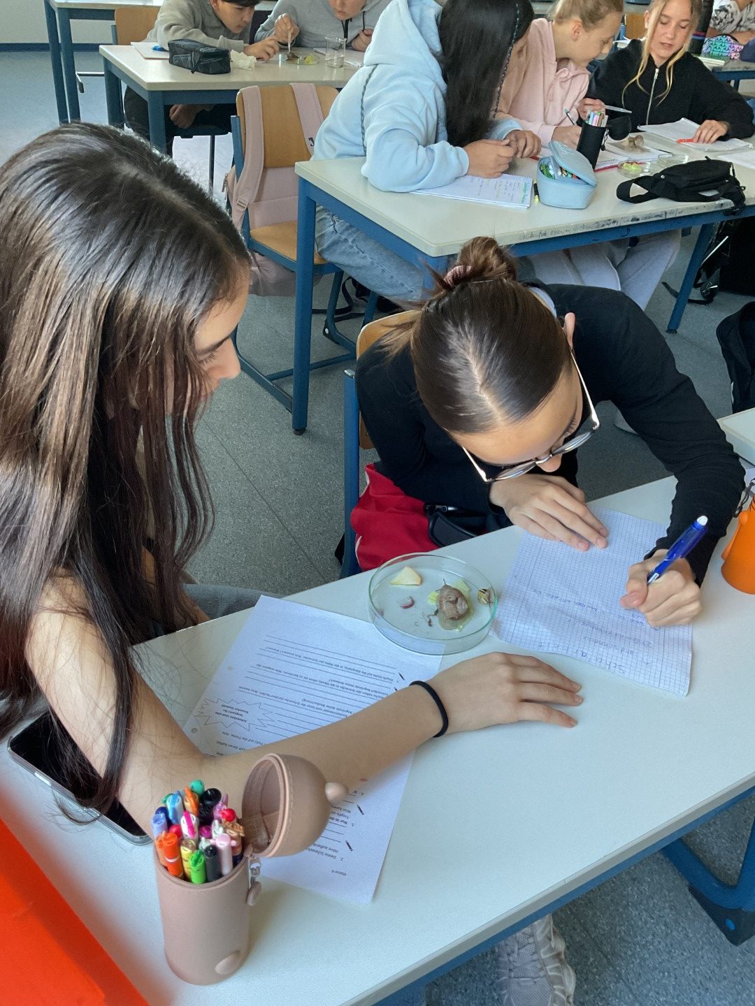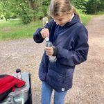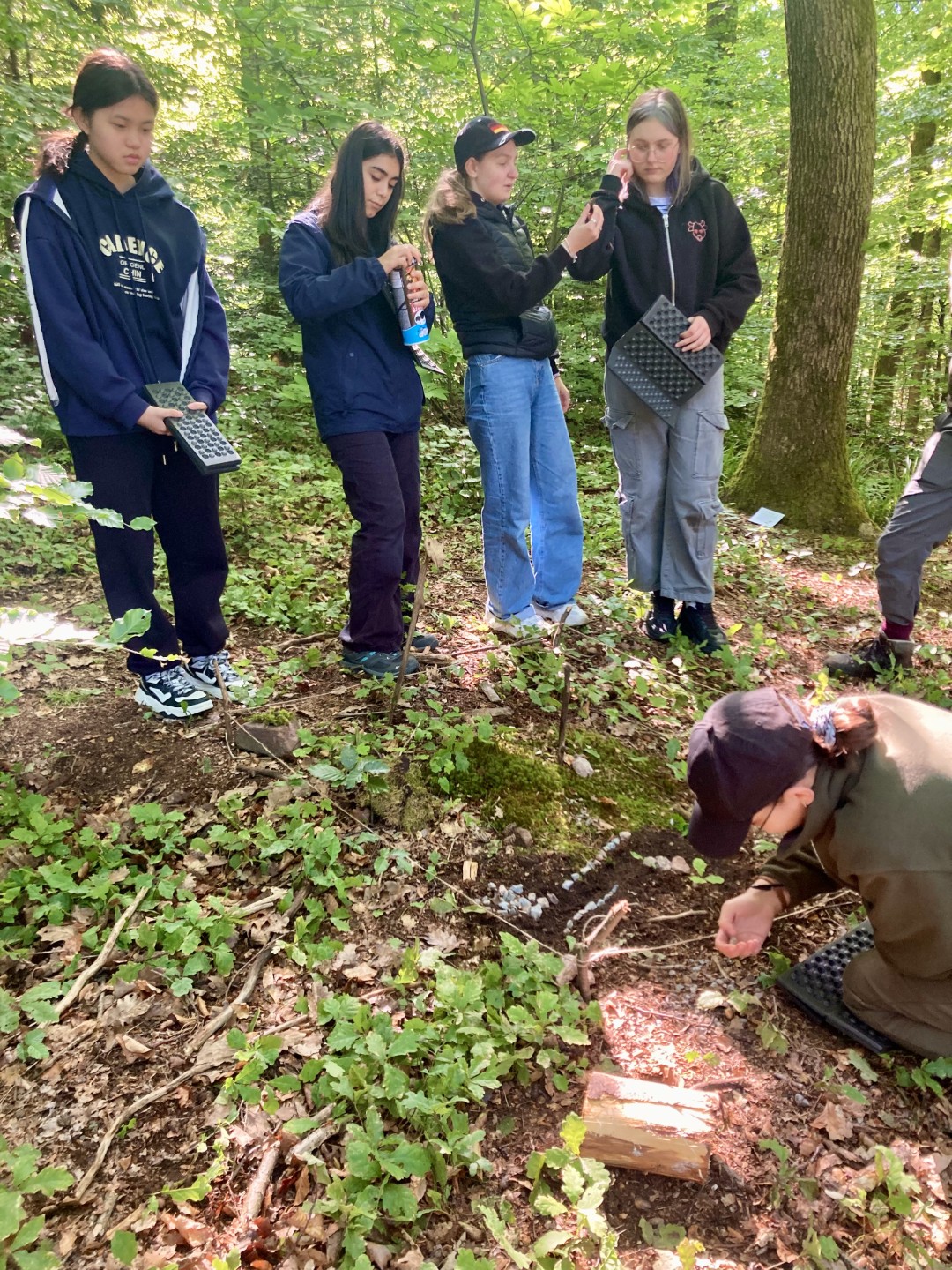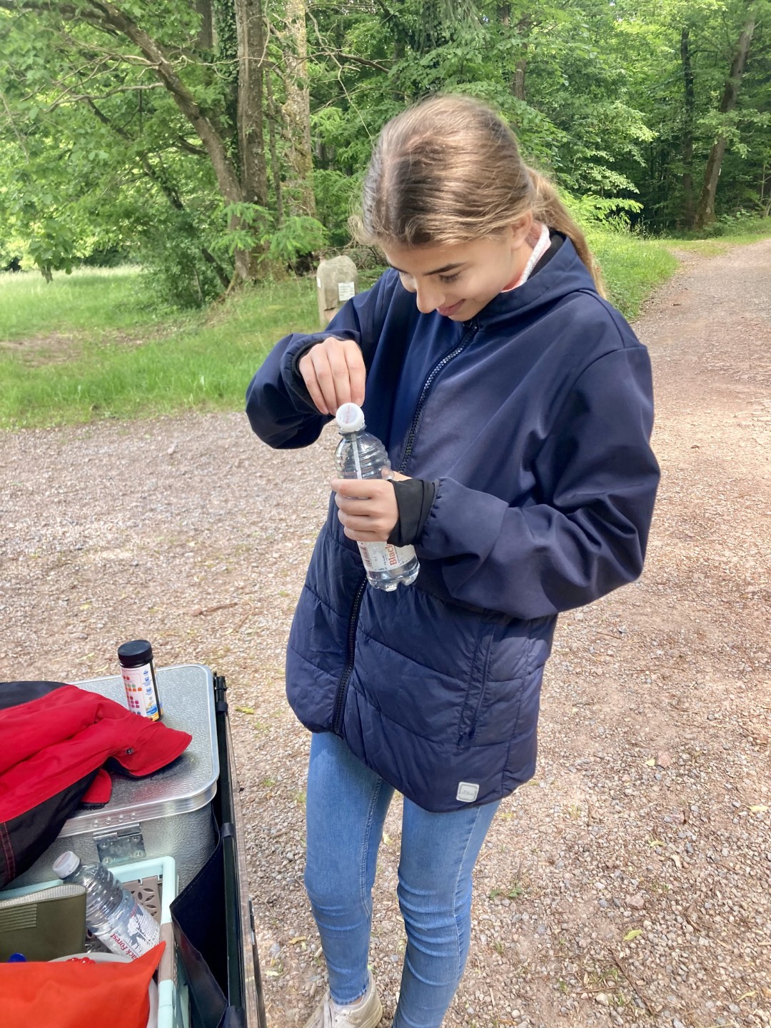Nebenbei haben wir untersucht, wie es unserem Wald eigentlich so geht. Heute stand dabei der kleine Bach im Mittelpunkt, dessen Wasserqualität wir analysiert haben. Diese wollen wir, genau wie die Bodenqualität und verschiedene Klimadaten, über längere Zeit beobachten, um eine Bild davon zu bekommen, wie diese sich verändern und den Wald beeinflussen.