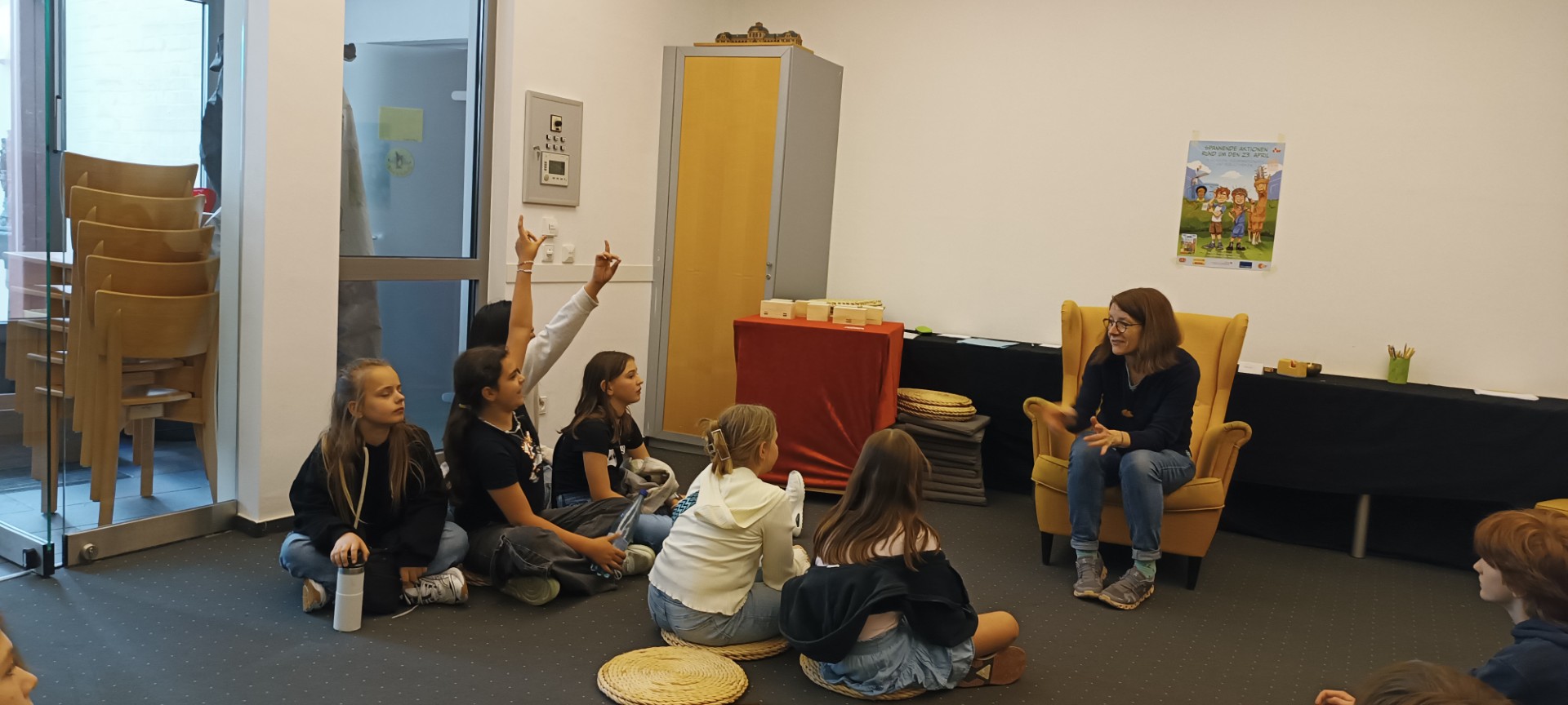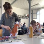Ganz anders die Klasse 6b des Gymnasiums: Hier werden Basics geübt – Wortschatzübungen standen auf dem Programm und hierzu galt es Begriffe zum Frühling zu finden um damit in einer bestimmten Grundstimmung einen Text zu verfassen. Gar nicht so einfach, aber alle waren fleißig, wie man sieht: