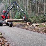 Im Anschluss erklärte der Förster die großen Fahrzeuge. Besonders beeindruckend war der ‘Harvester’, was soviel wie ernten bedeutet. Mit dieser Maschine werden die Äste entfernt, der Baum entrindet und in Stücke zersägt.
