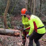 Danach bekamen wir erklärt und gezeigt, wie ein Baum gefällt wird.