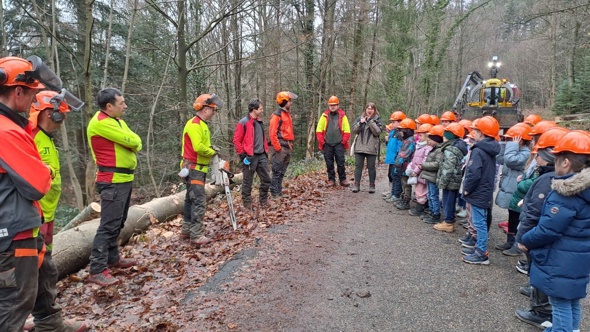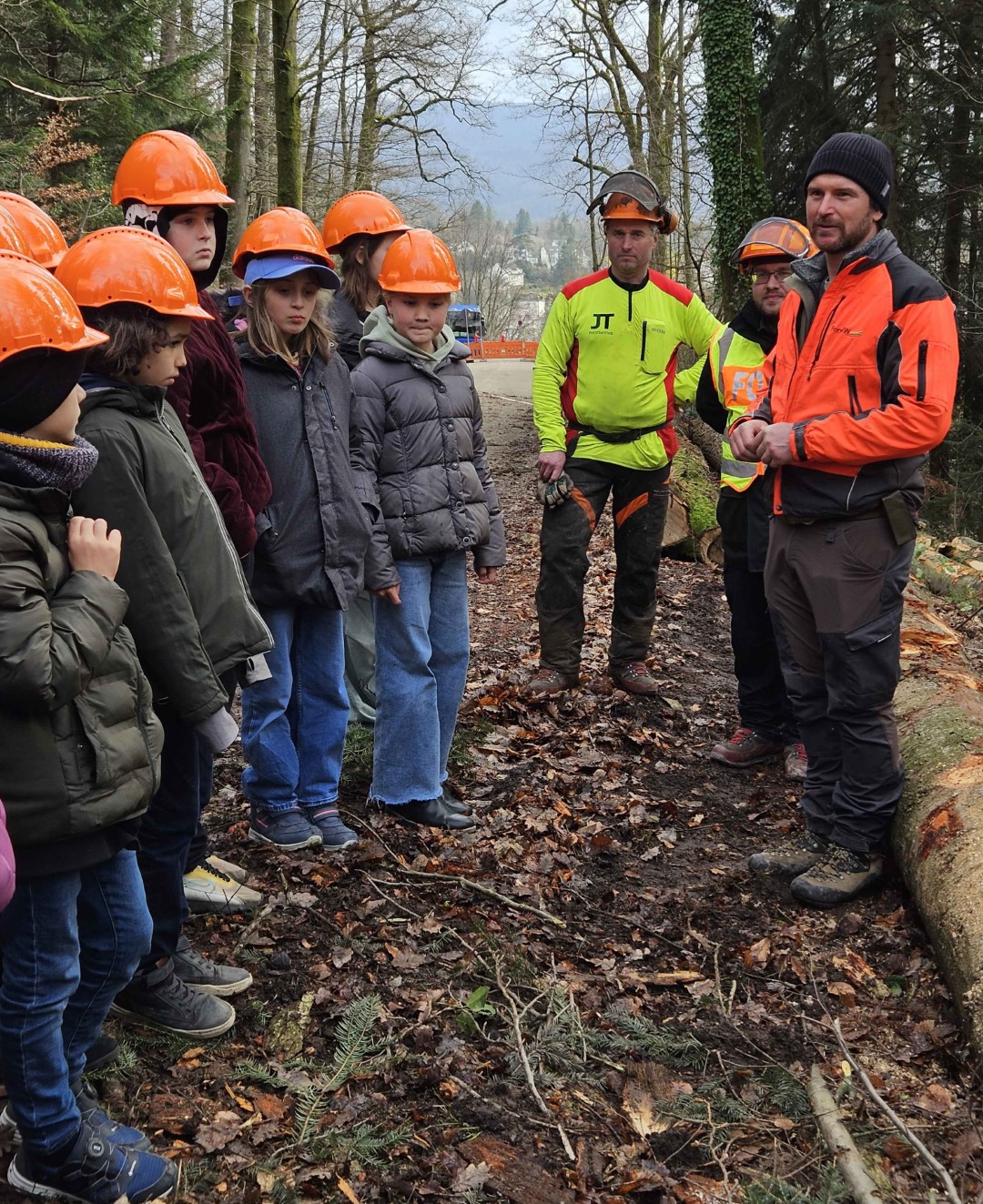 Am Dienstag, 20. Februar, durften drei Klassen der Grundschule bei Baumfällarbeiten ganz in der Nähe der Schule dabei sein.
