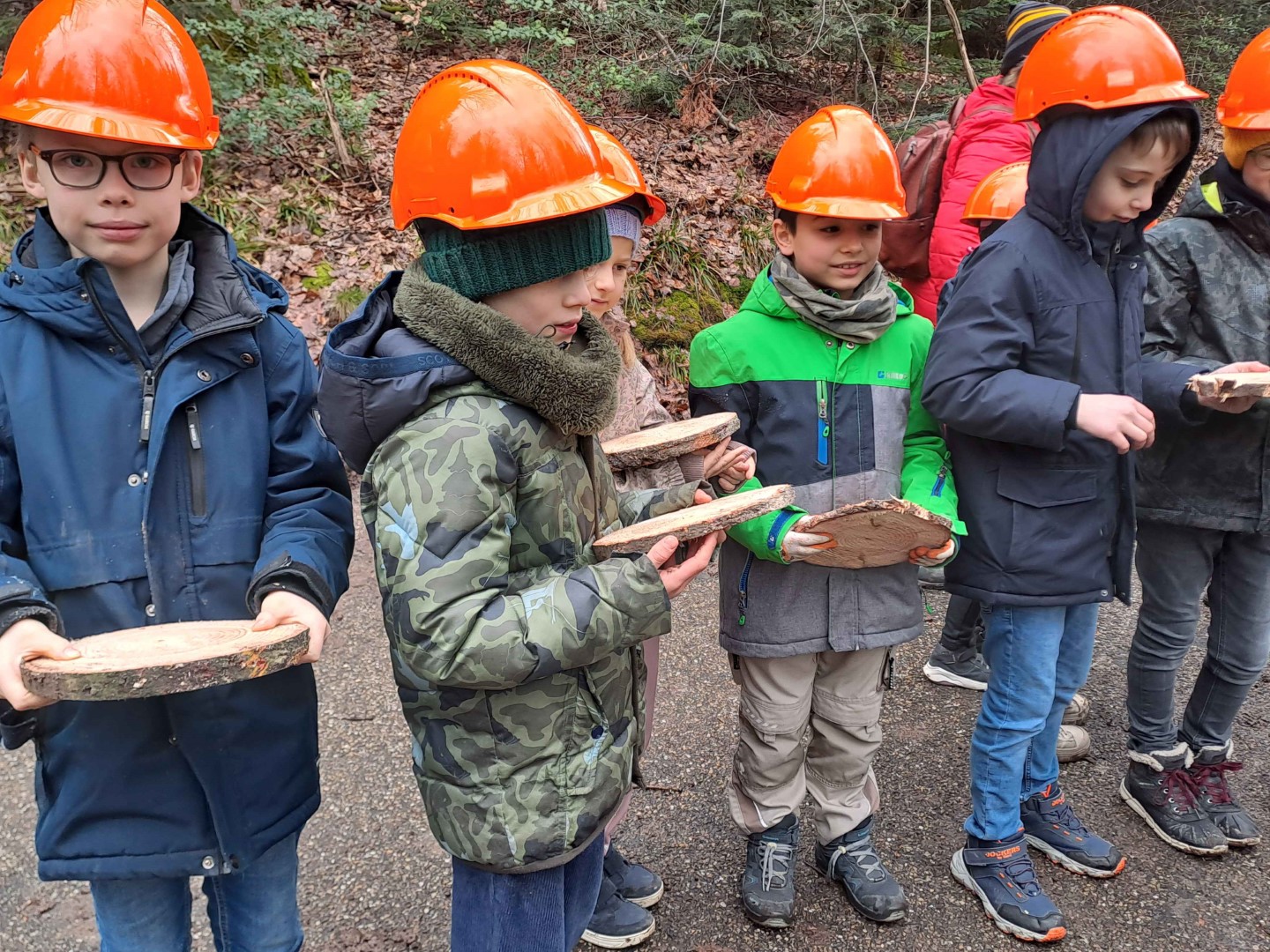 Zum Abschluss bekam jedes Kind eine frisch abgesägte Holzscheibe und ein kleines Büchlein über die Waldarbeiten geschenkt.